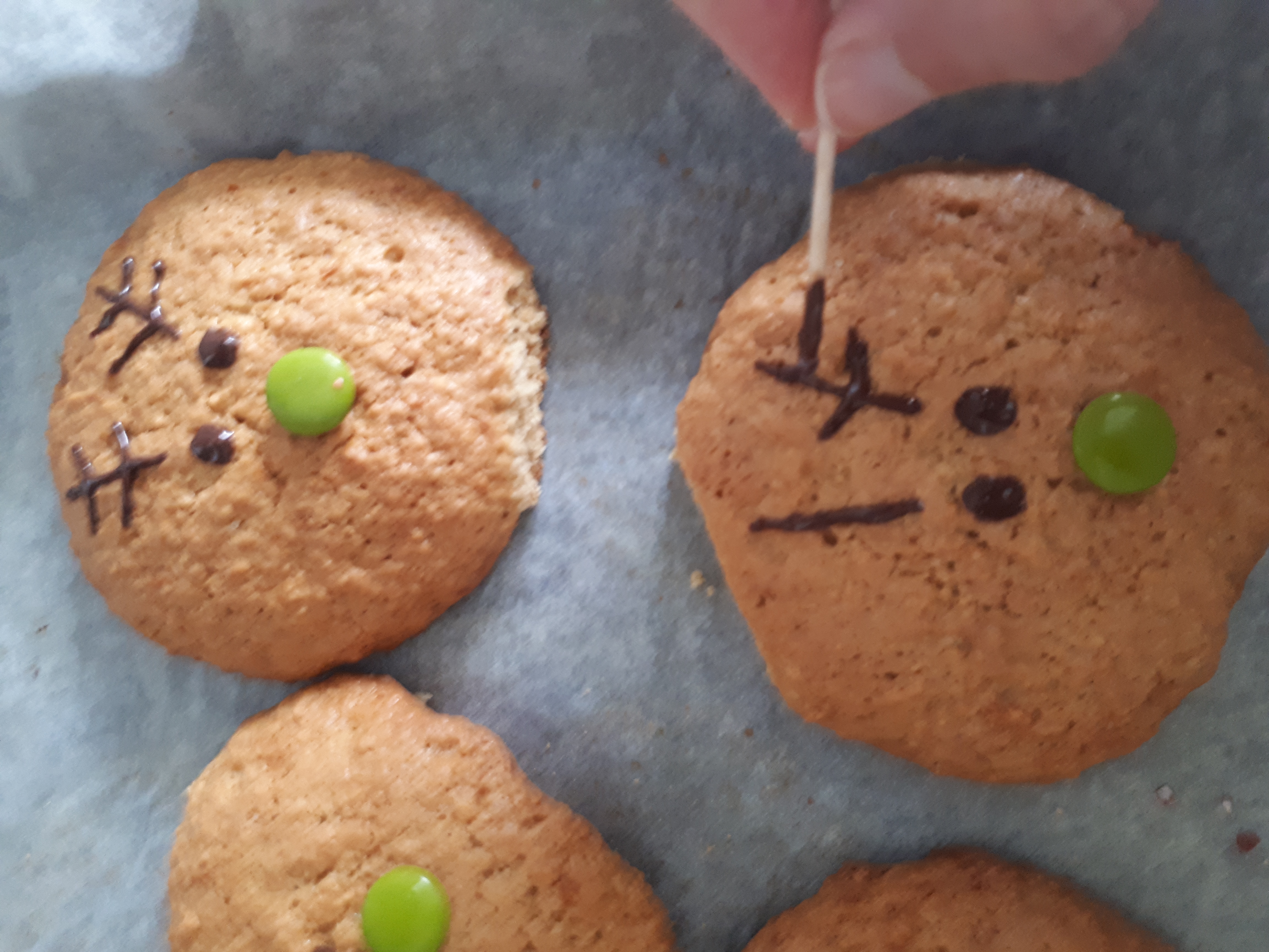 -cuando las saquemos del horno, las dejamos enfriar y las decoramos con chocolate y lacasitos (para que los lacasitos se queden pegados, podemos poner un poco de chocolate derretido debajo)