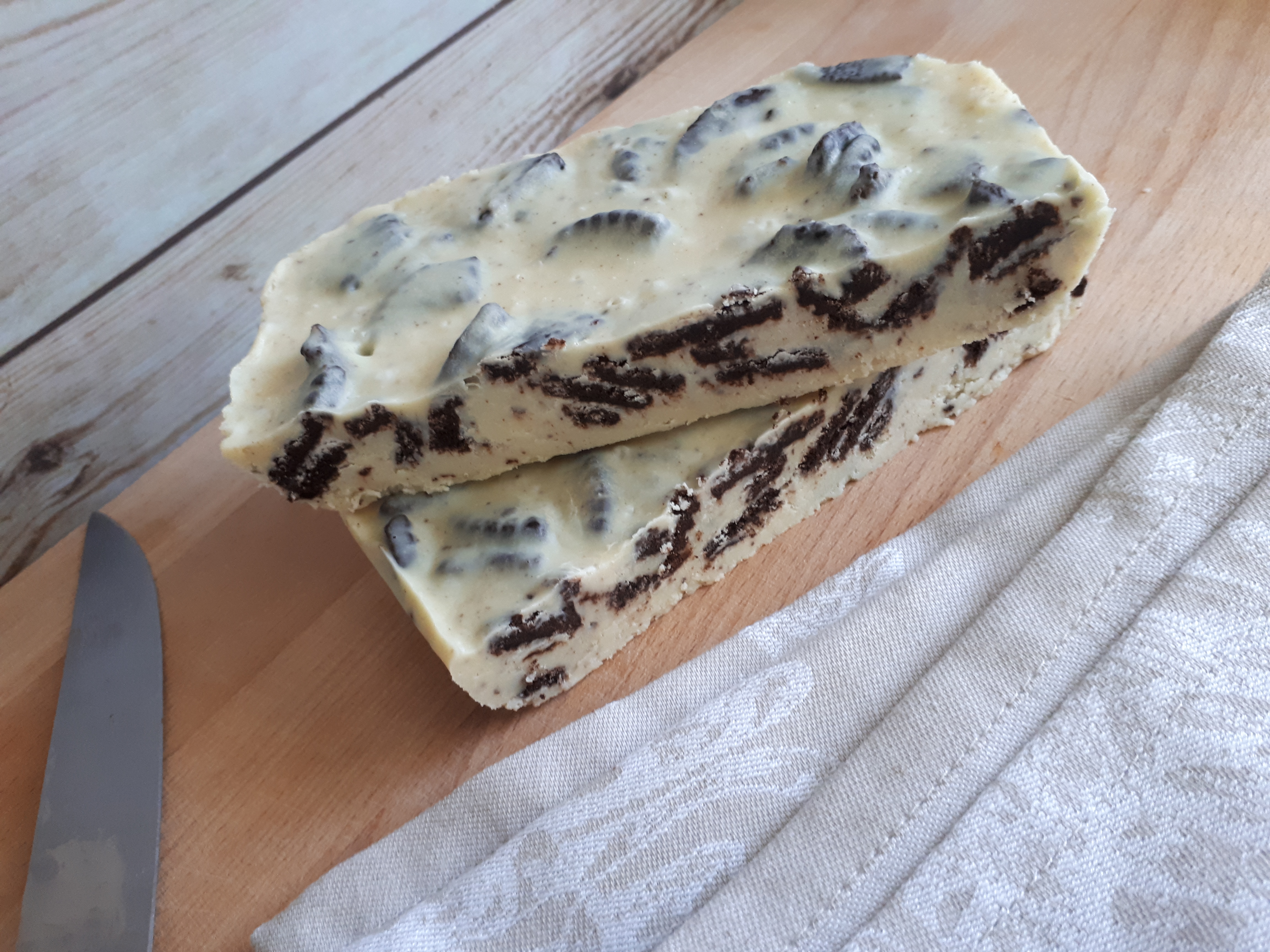 Cuando fui a casa de mi tía, me enseñó una revista que tenía de recetas de Navidad y me guardé algunas. Hice fotos a varias de turrones y el que más le gustó a Rafa fue el de chocolate blanco con galletas Oreo. Aprovechando que estos días vendrá la familia a casa, he preparado uno para la sobremesa. Comparto con vosotros la receta, que es facilísima, por si queréis hacer un turrón artesano para estas fiestas.