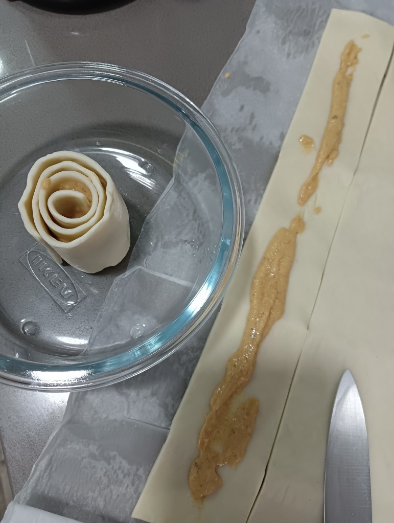 Si no queréis preparar la masa de los cinnamon rolls, podemos hacer unas caracolas de canela con hojaldre, es más rápido y también están muy buenas. Para prepararlas, solo hay que extender la lámina de masa de hojaldre y espolvorearle azúcar moreno mezclado con canela (buena cantidad) y luego enrollar y cortar en rodajas antes de llevar al horno.
