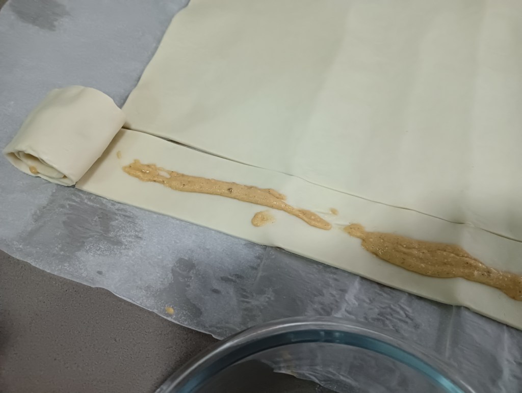 Con el hojaldre podemos hacer palmeras, yo las hice de chocolate y cacao, pero se pueden rellenar también de crema o de cabello de ángel. Cómo para preparar las caracolas de canela, solo hay que extender la masa y añadir los ingredientes que queramos. En este caso, enrollamos la masa por los dos lados, desde un extremo hasta el centro y desde el otro extremo igual, así le damos la forma de palmera para luego cortar a rodajas y hornear.