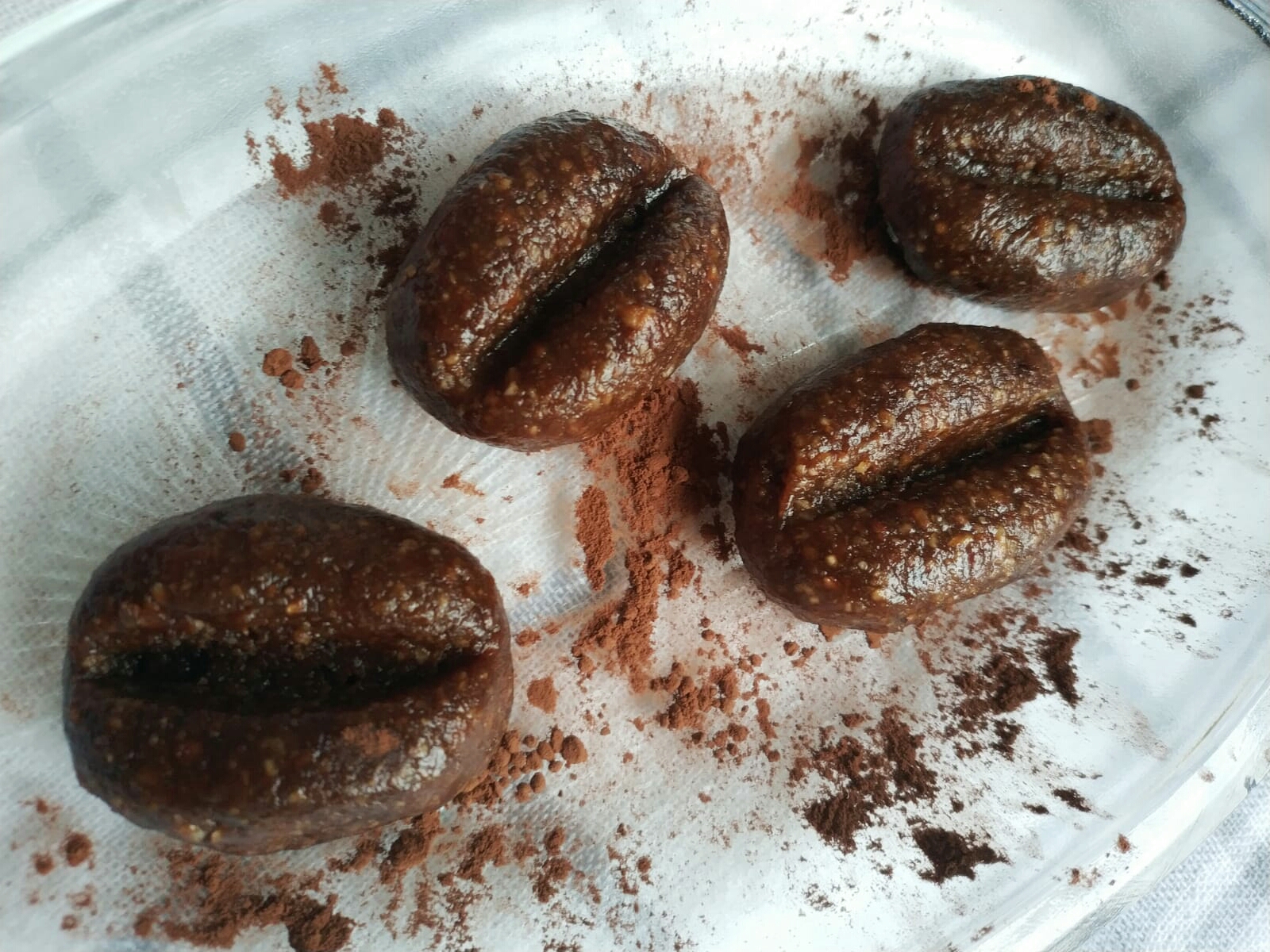 -removemos bien la masa, la dejamos reposar un rato en la nevera y después le damos forma. Hacemos bolitas, las chafamos un poco con la mano y con la ayuda del mango de una cuchara o tenedor, le acabamos de dar la forma de un grano de café marcando una raya en el centro