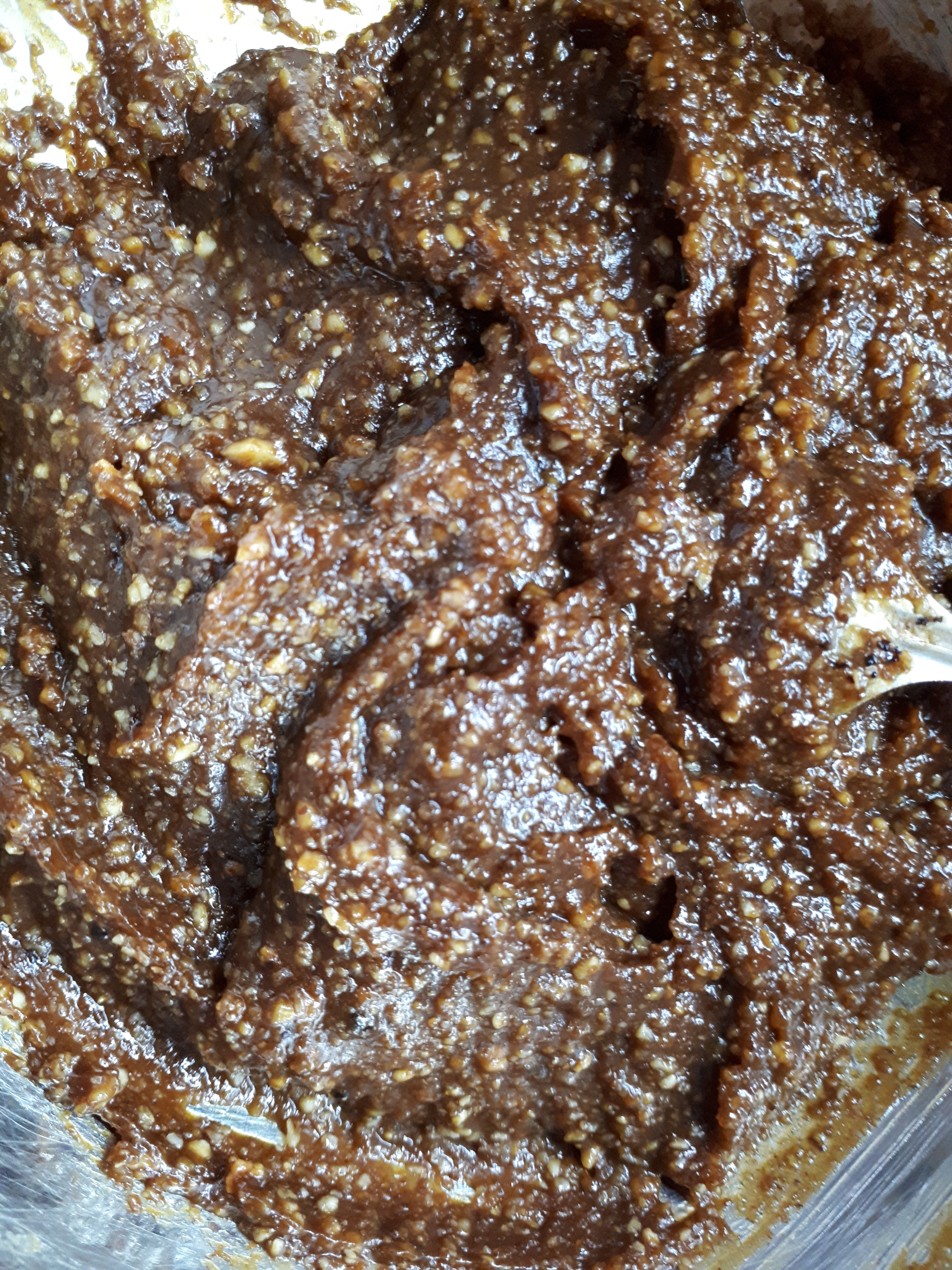 -añadimos a nuestra mezcla 2 cucharaditas de azúcar moreno y vamos añadiendo leche hasta que veamos que la masa tiene consistencia y la podemos trabajar con las manos
