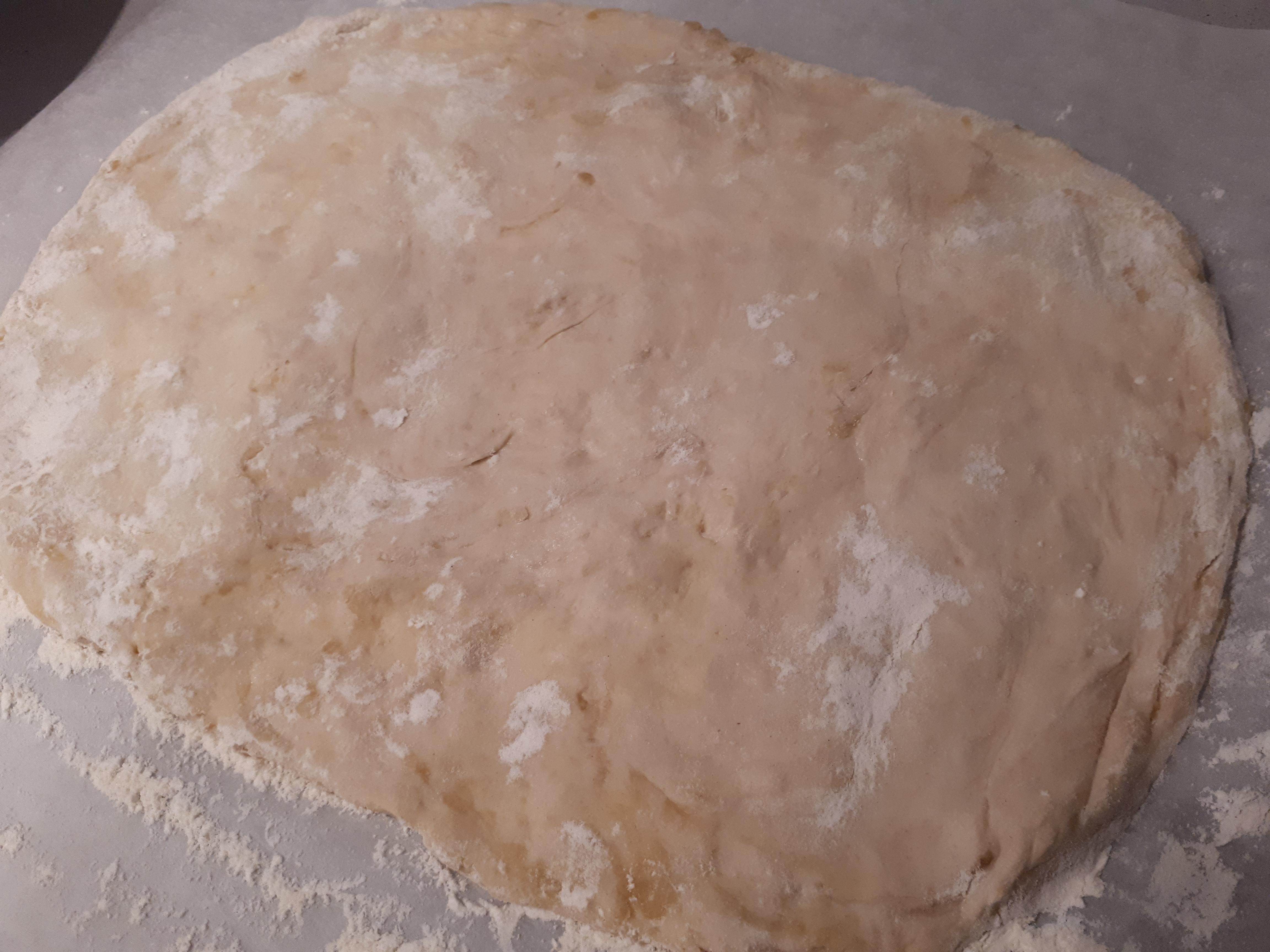 -la dejamos reposar en un bol tapada con un paño de cocina, un poco enharinada, hasta que la masa duplique su volumen