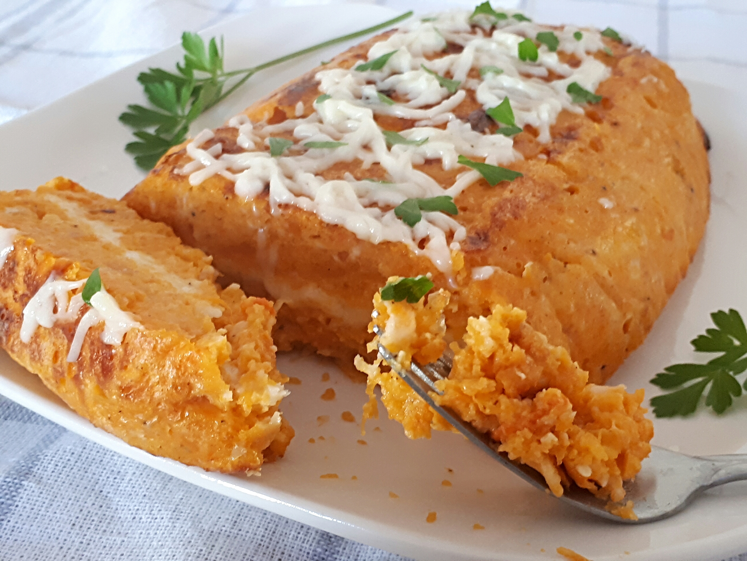 Como muchos de vosotros ya sabéis, soy muy fan de la calabaza. He preparado varias recetas tanto dulces como saladas con ella como ingrediente principal. Mi último descubrimiento ha sido el pastel de calabaza y queso que preparé con mi madre para comer. Me ha encantado el resultado y con las cantidades que os indico tenéis para 3-4 raciones. Yo lo he preparado en un molde de silicona alargado, pero se puede preparar sobre cualquier recipiente apto para horno.