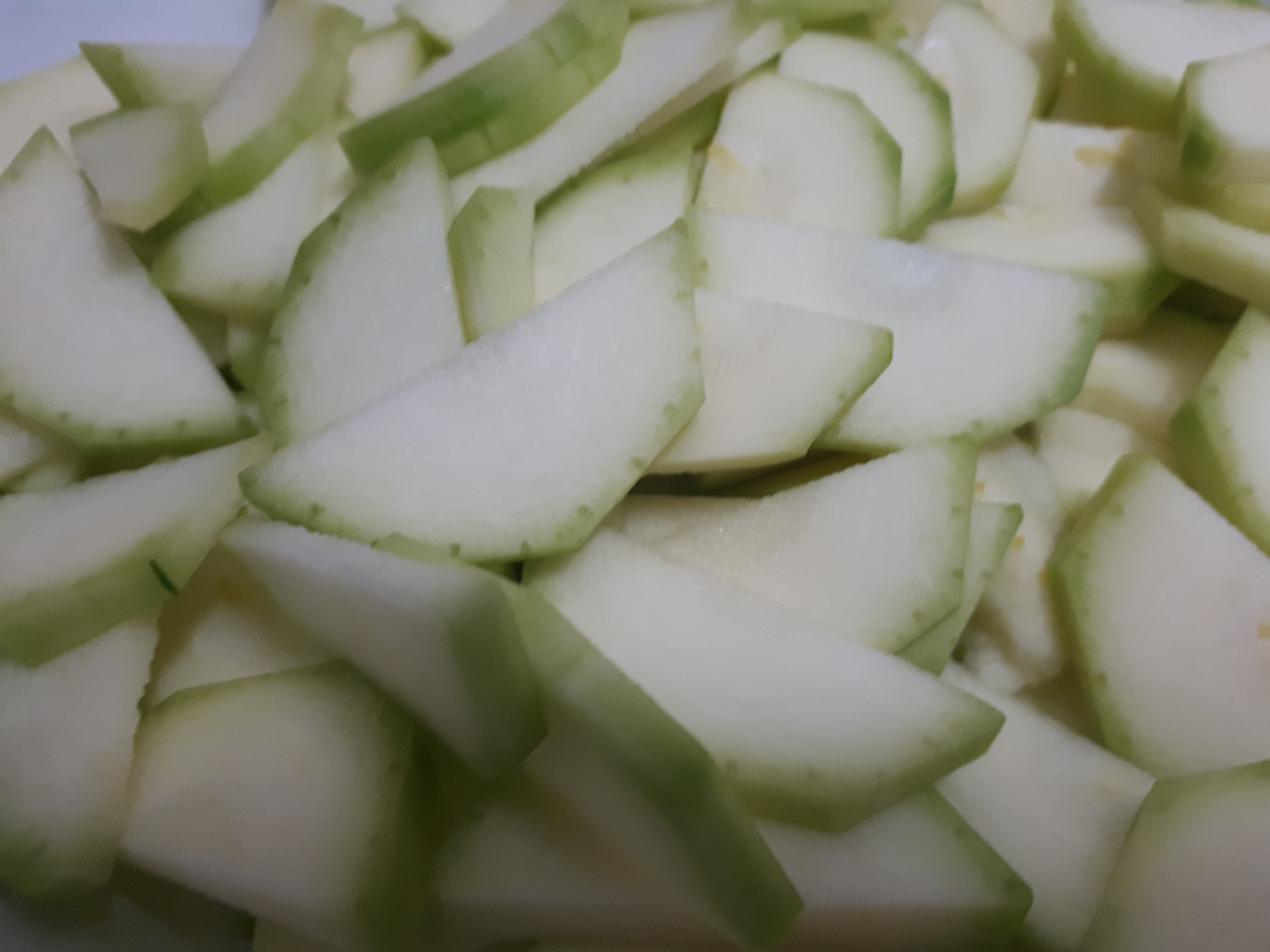 -por un lado, pelamos y cortamos las patatas en rodajas finitas y por otro lado hacemos lo mismo con el calabacín y le añadimos un poco de sal a ambos