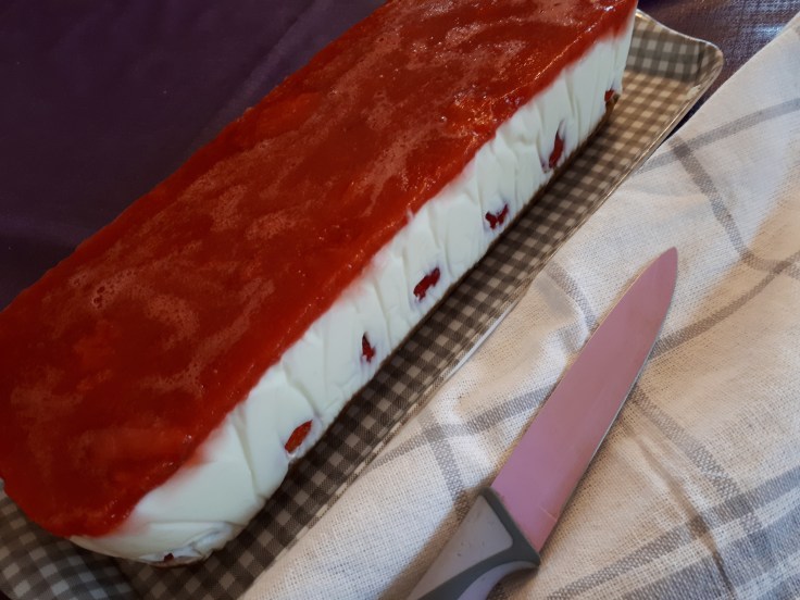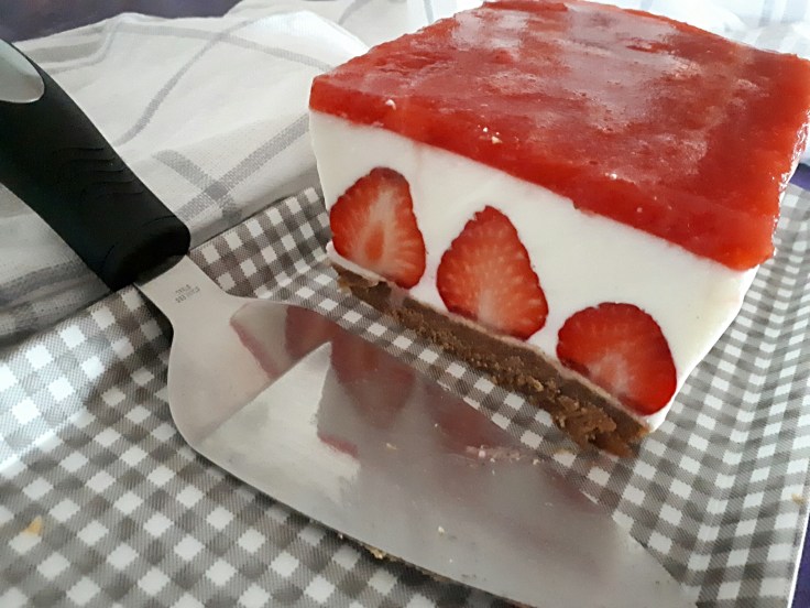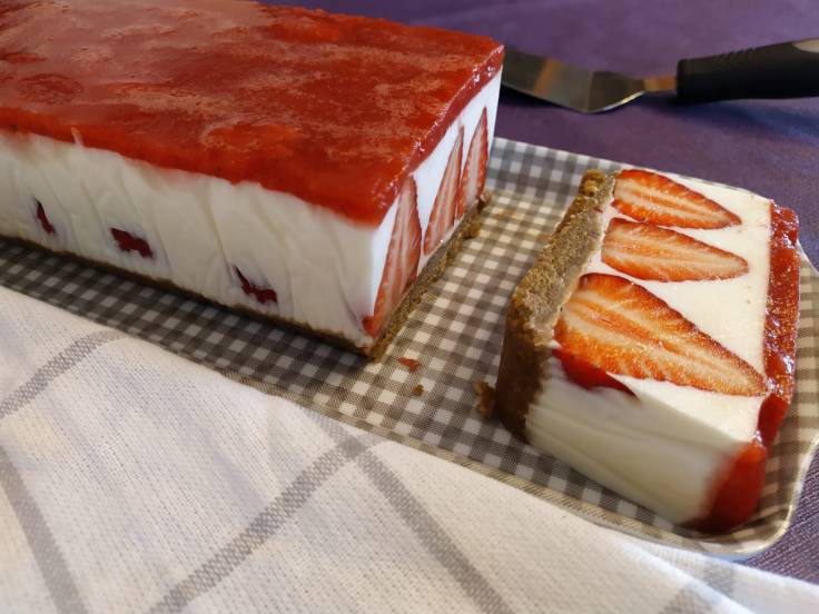 Esta vez, mi madre y yo nos hemos decantado por un postre refrescante y saludable para redondear la comida del domingo, que ha sido carne a la brasa. Decidiendo qué postre preparar, optamos por algo suave y como es temporada de fresas, hemos querido aprovechar esta fruta que tanto nos gusta y da mucho color y juego en la cocina. Hemos hecho esta versión saludable: tarta de yogur y fresas. Es muy rápida y fácil, lo único que hay que dejarla reposar un rato en la nevera para que se cuaje la gelatina. Postre para repetir seguro y exeprimentar otras versiones con otras frutas, sabores de yogur. Espero que os guste tanto como a nosotros.