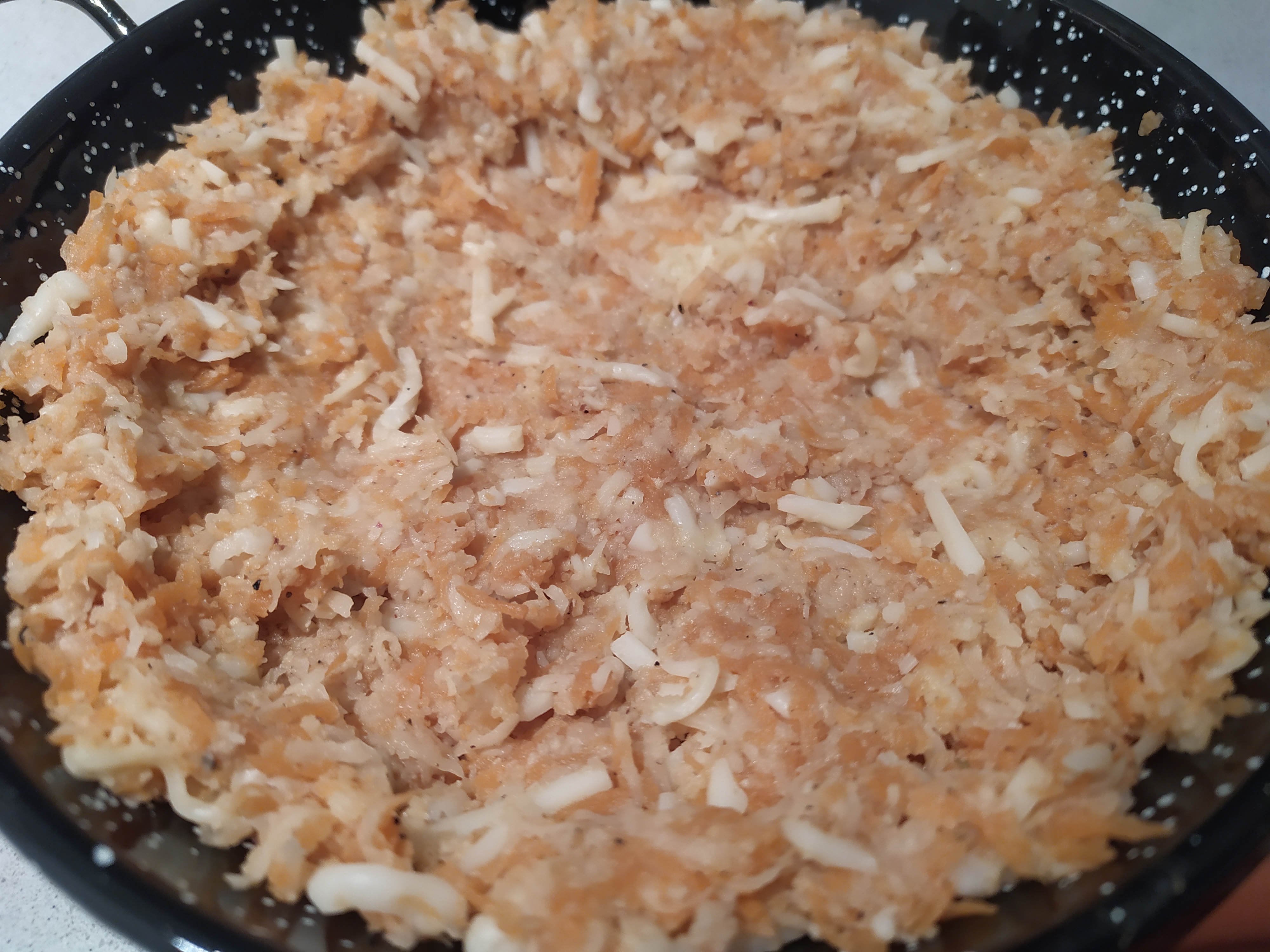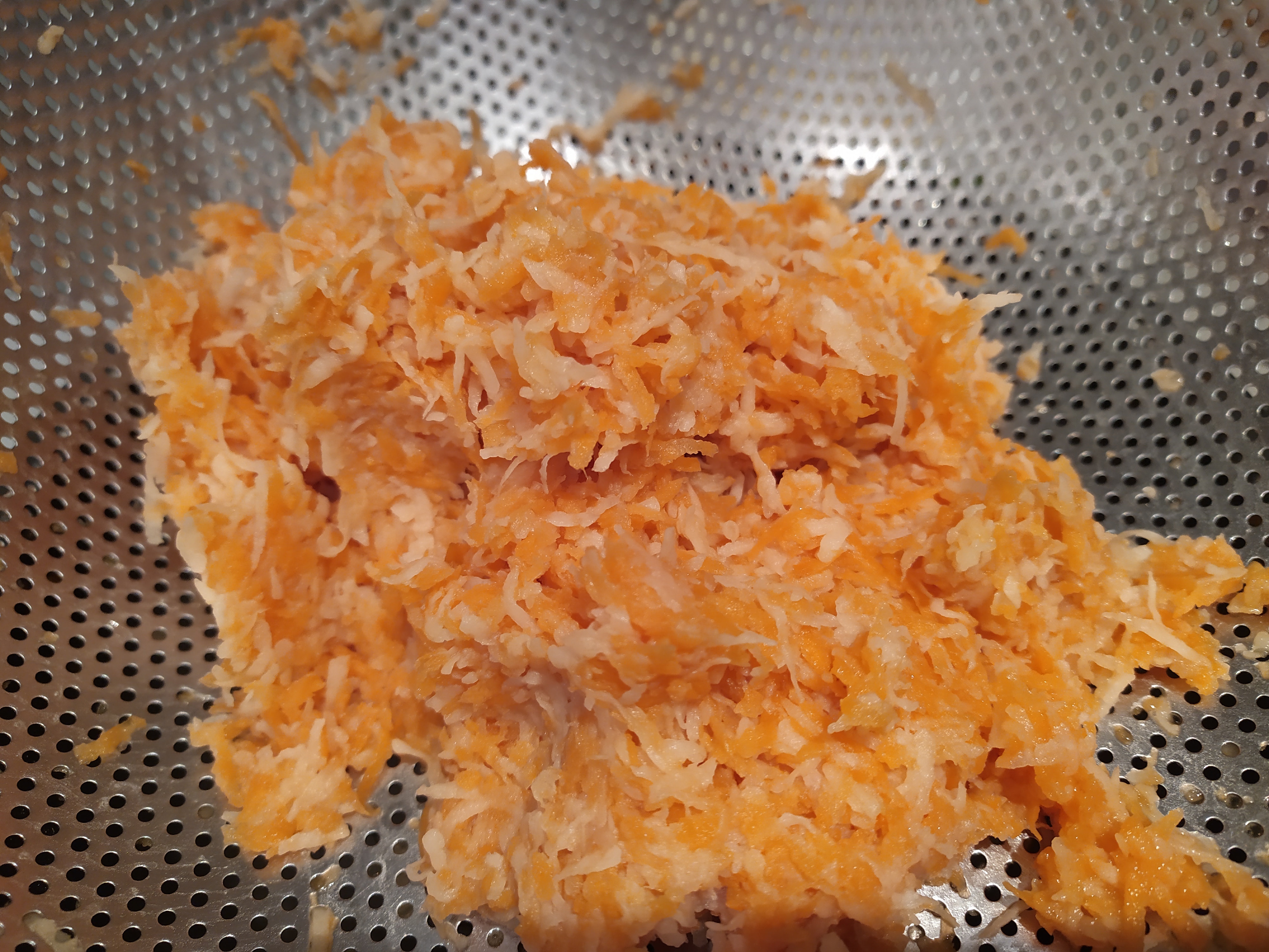 -una vez ralladas y en crudo, las colocamos en un escurridor y las estrujamos con las manos para que pierdan el agua que tienen