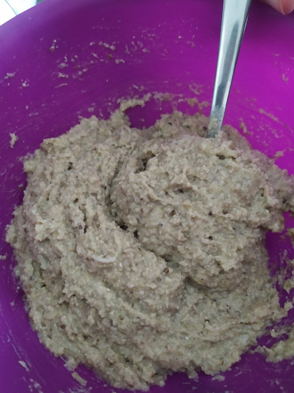 -para que la masa tenga más consistencia, le añadimos 6-8 cucharadas de pan rallado, hasta que vemos que podemos trabajar la masa para darle forma