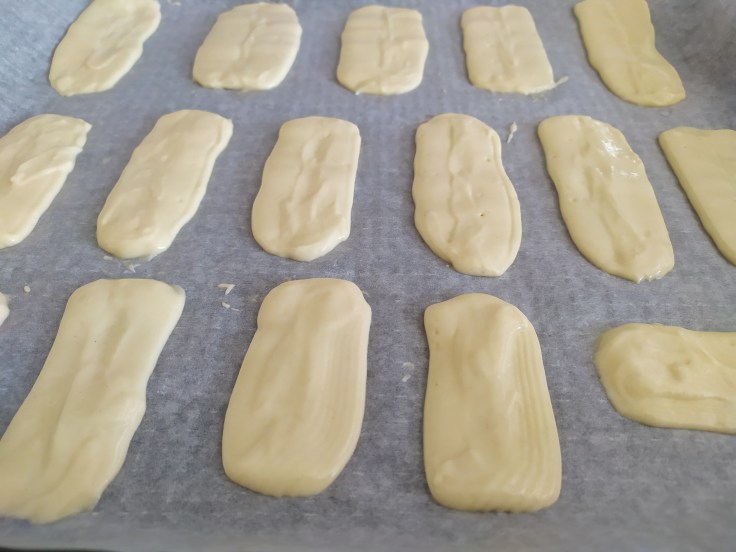 -vamos colocando las lenguas de gato encima de un papel de horno