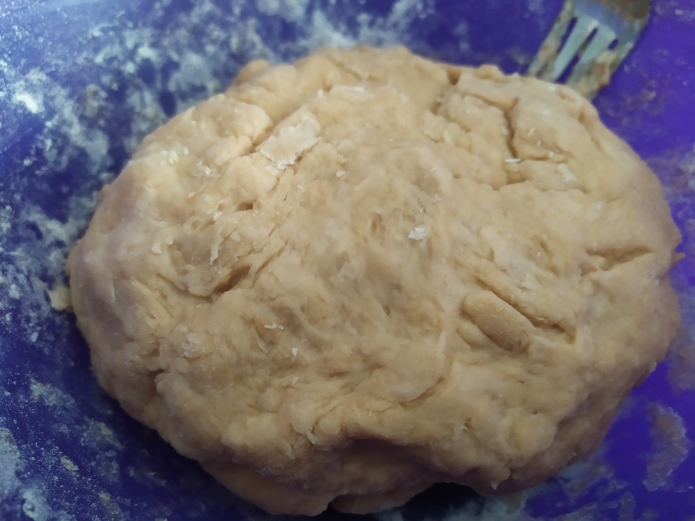 -calentamos el agua y disolvemos en ella cuando esté tibia la levadura fresca. Reservamos