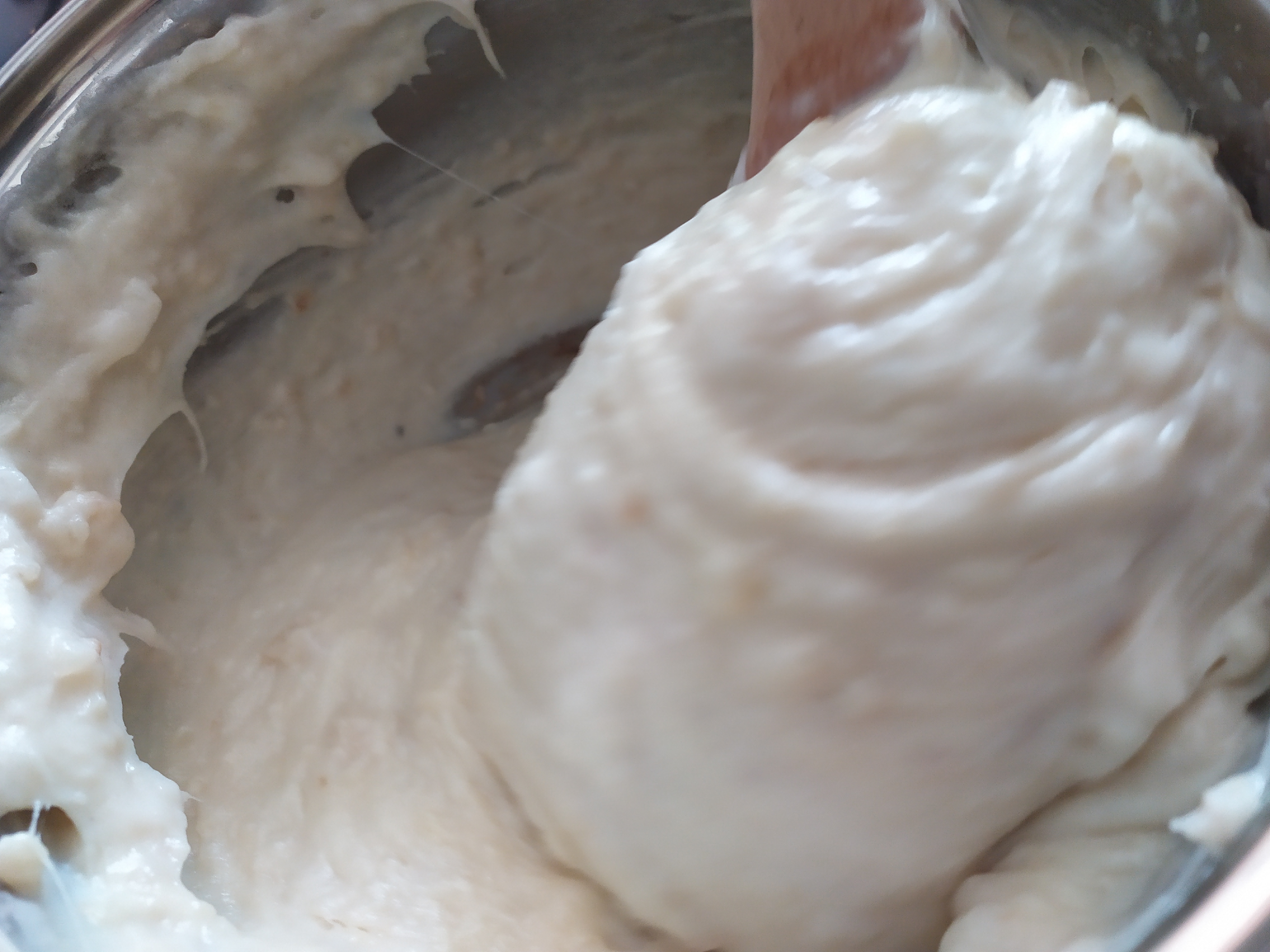 -añadimos en la olla la leche y removemos para que no queden grumos. Incorporamos también el queso y añadimos una poquita de sal (al gusto)