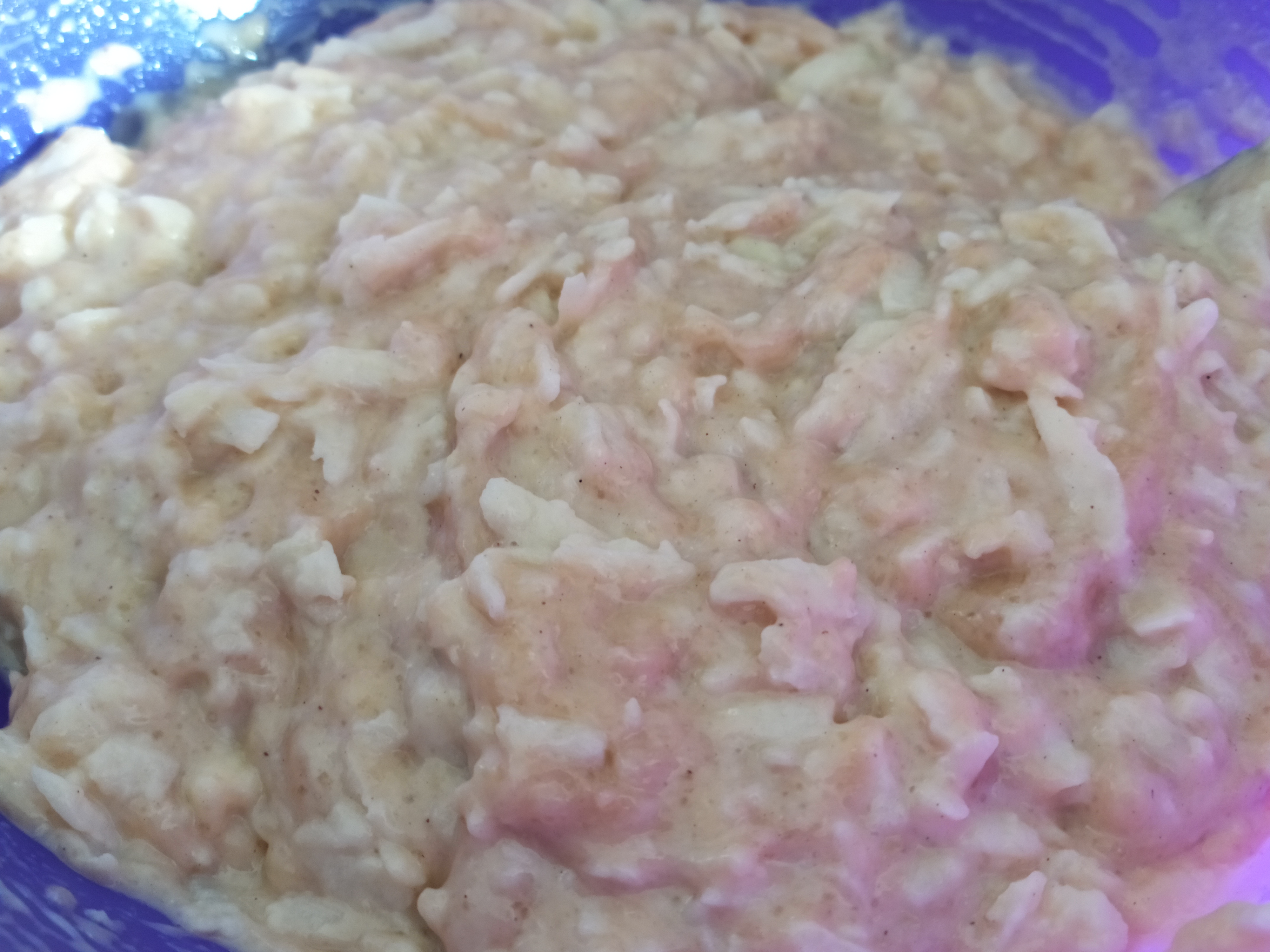 -por último, añadimos las manzanas ralladas y mezclamos bien con la ayuda de un tenedor hasta que se integren todos los ingredientes. Nos quedará una masa pegajosa