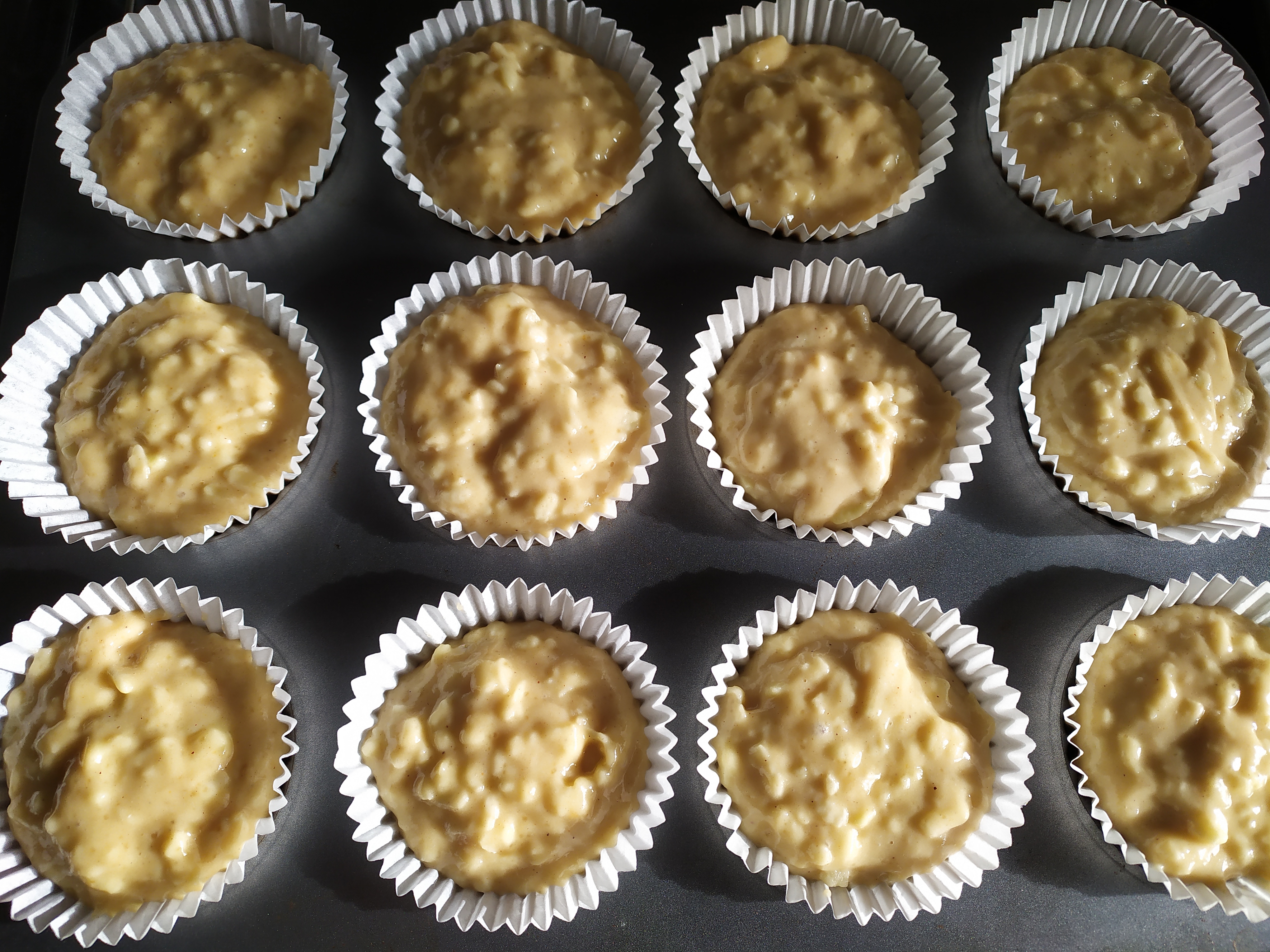 -rellenamos los moldes 3/4 partes, ya que luego al hornear crecen