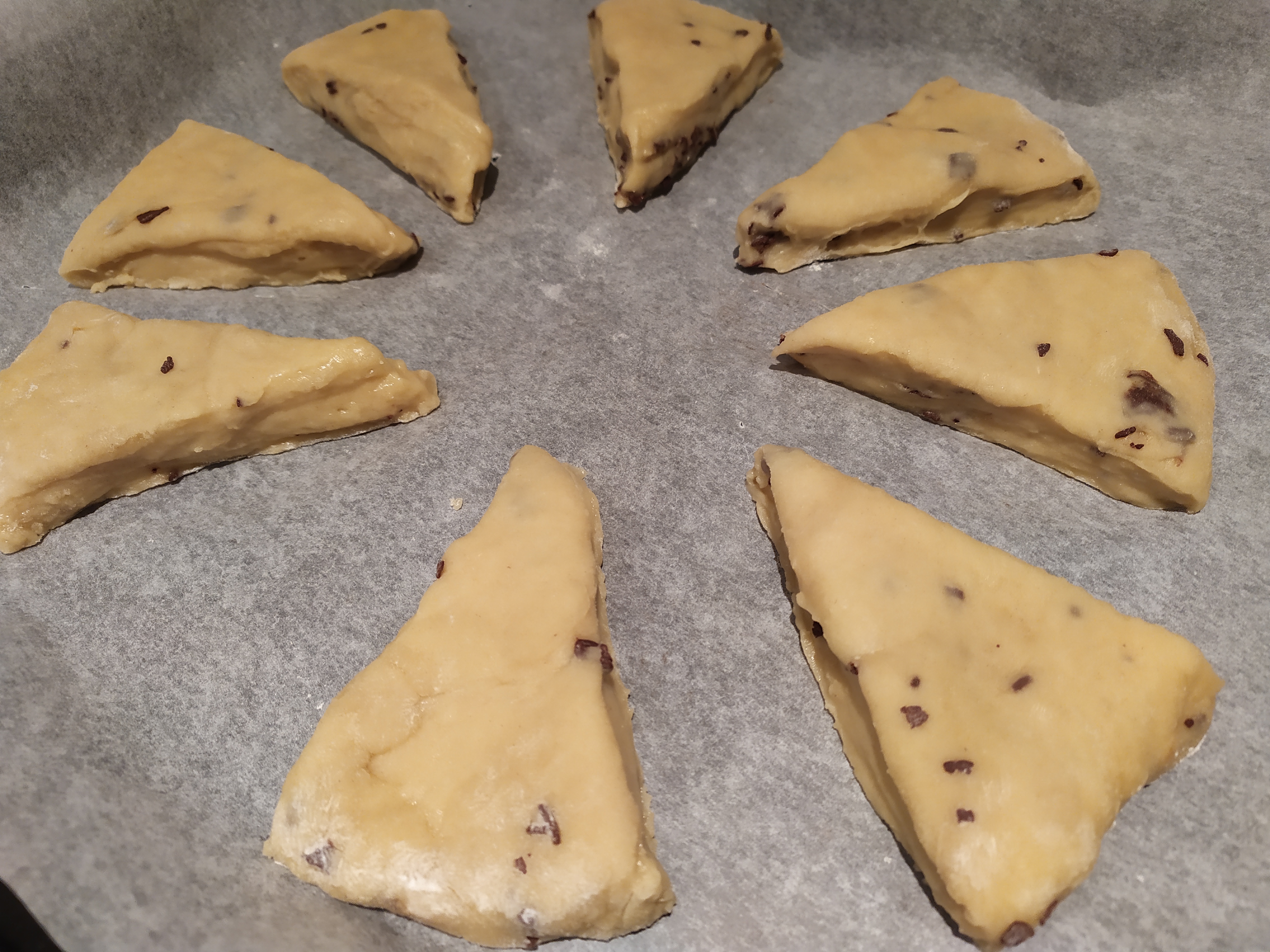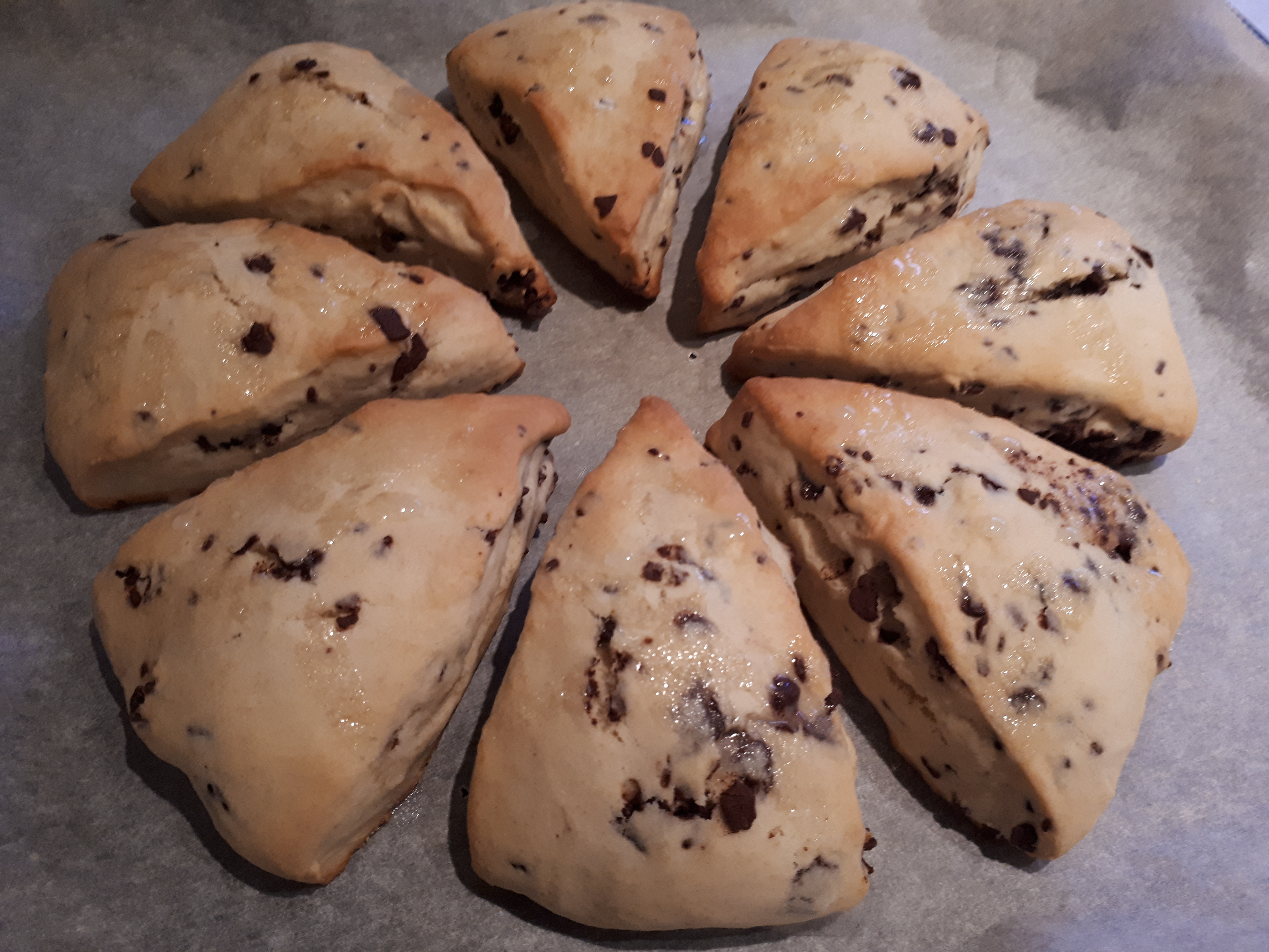 La otra mañana tenía un rato libre antes de irme a trabajar y dejé preparada la masa para hacer scones. Desconocía qué era, pero vi unas fotos por Internet con muy buena pinta y miré la receta; ponía que era muy rápido de preparar, así que me decanté por ellos. Por lo que he leído, es un panecillo dulce de mantequilla originario de Escocia, típico de la cocina de Reino Unido, que se consume tanto para merendar como para desayunar. En esta ocasión los he preparado con chips de chocolate, pero se pueden hacer hacer con arándanos desecados y rellenarlos de mantequilla y mermelada. Tras el éxito que han tenido, los he preparado de nuevo y esta vez les he añadido un glaseado por encima para darles un poco más de dulzor y les he añadido más chips de chocolate.