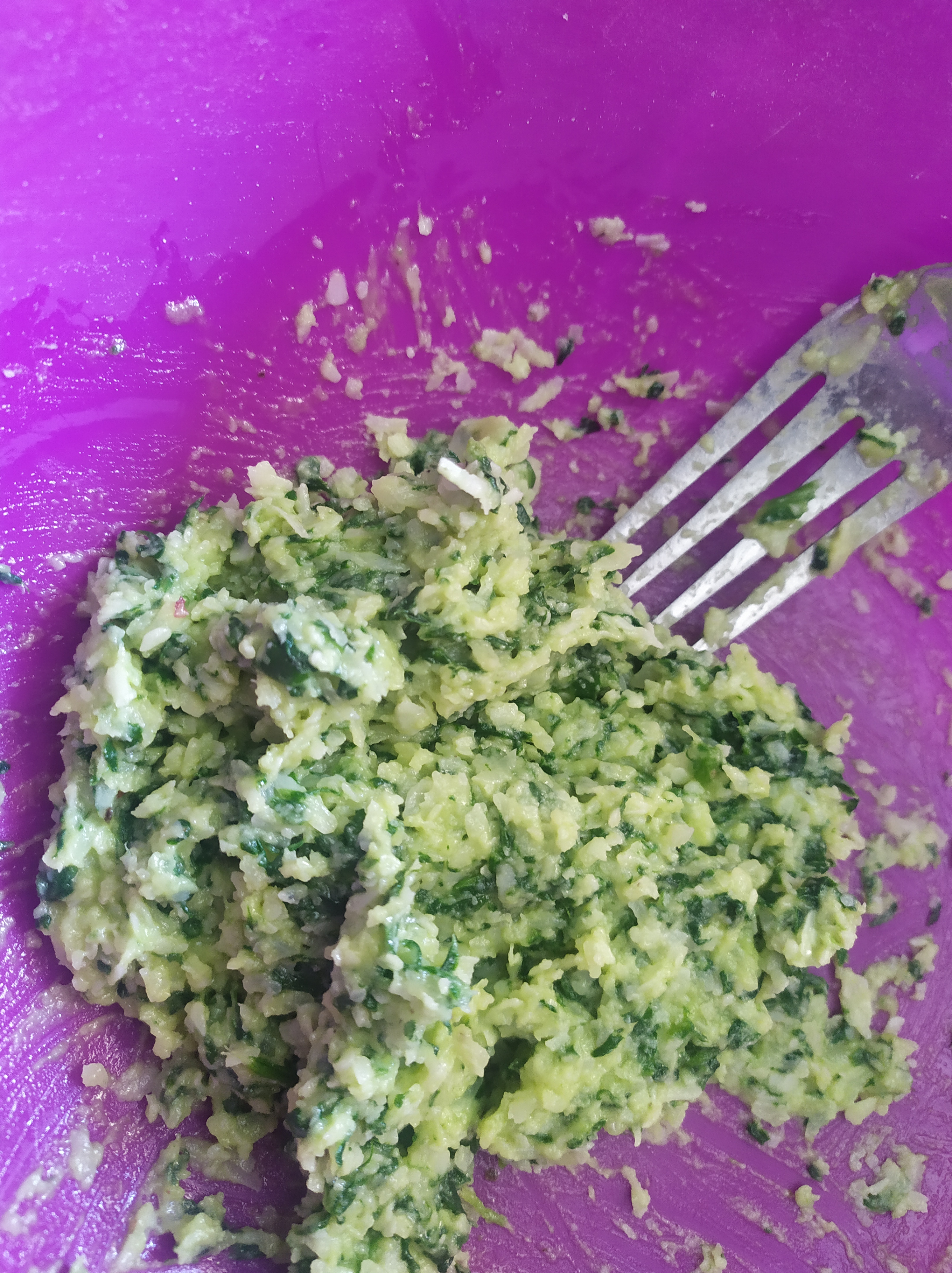 -cuando estén frías, incorporamos el queso (previamente rallado) y medio huevo batido y removemos bien. Ya tenemos nuestro relleno preparado