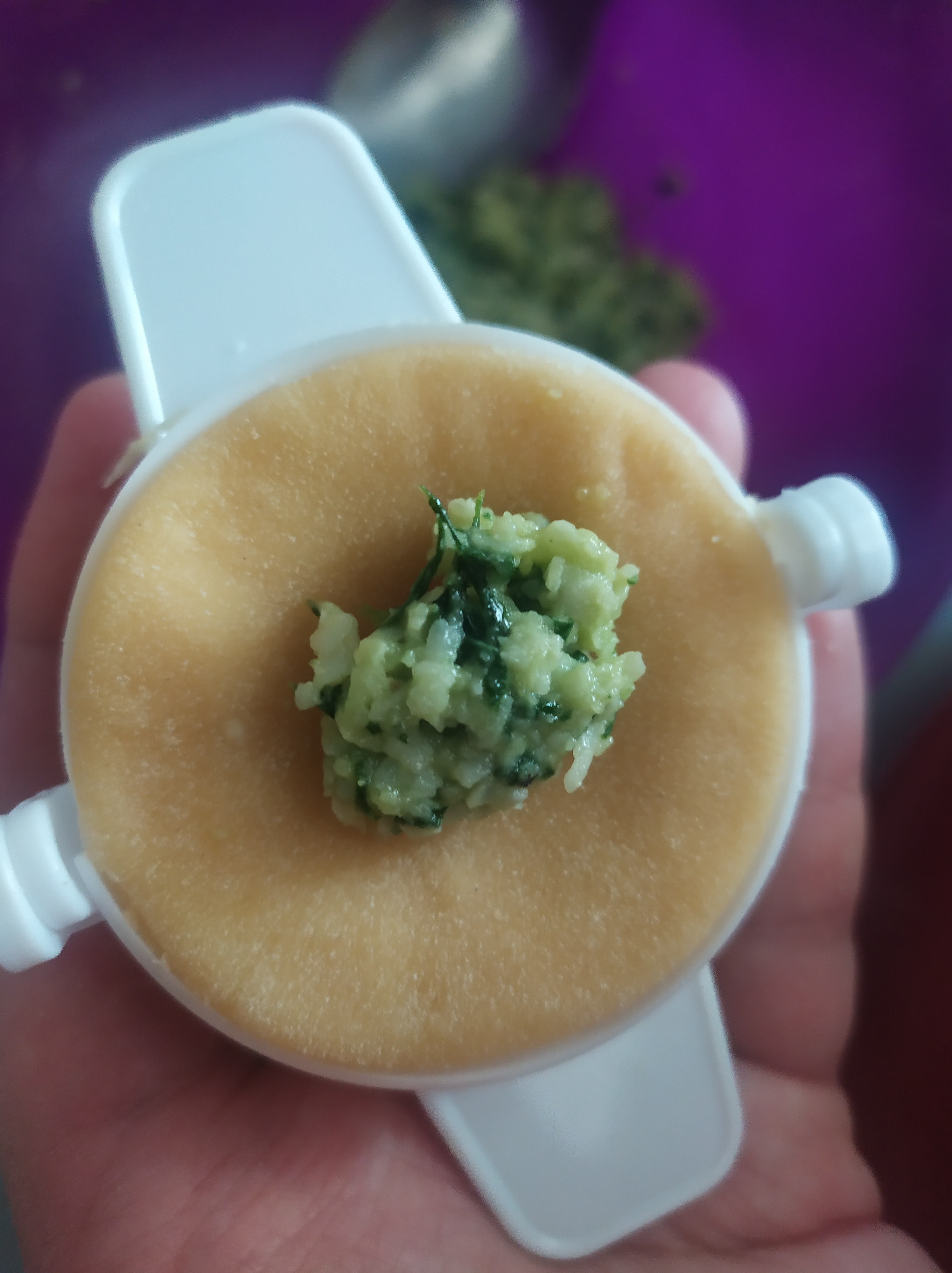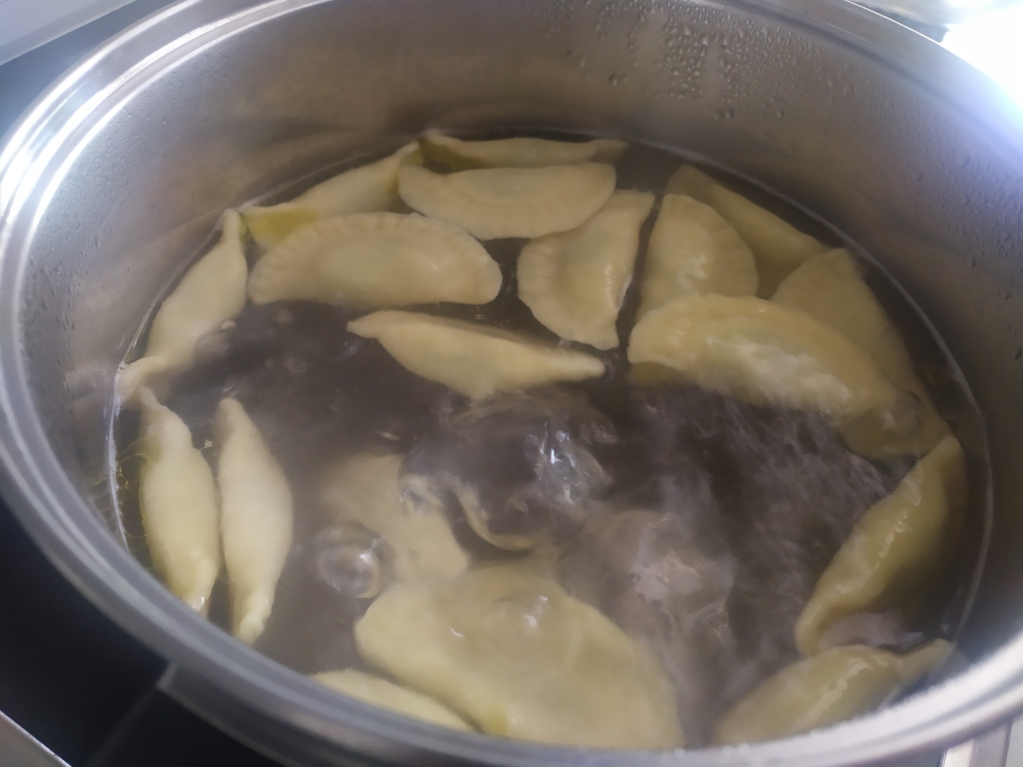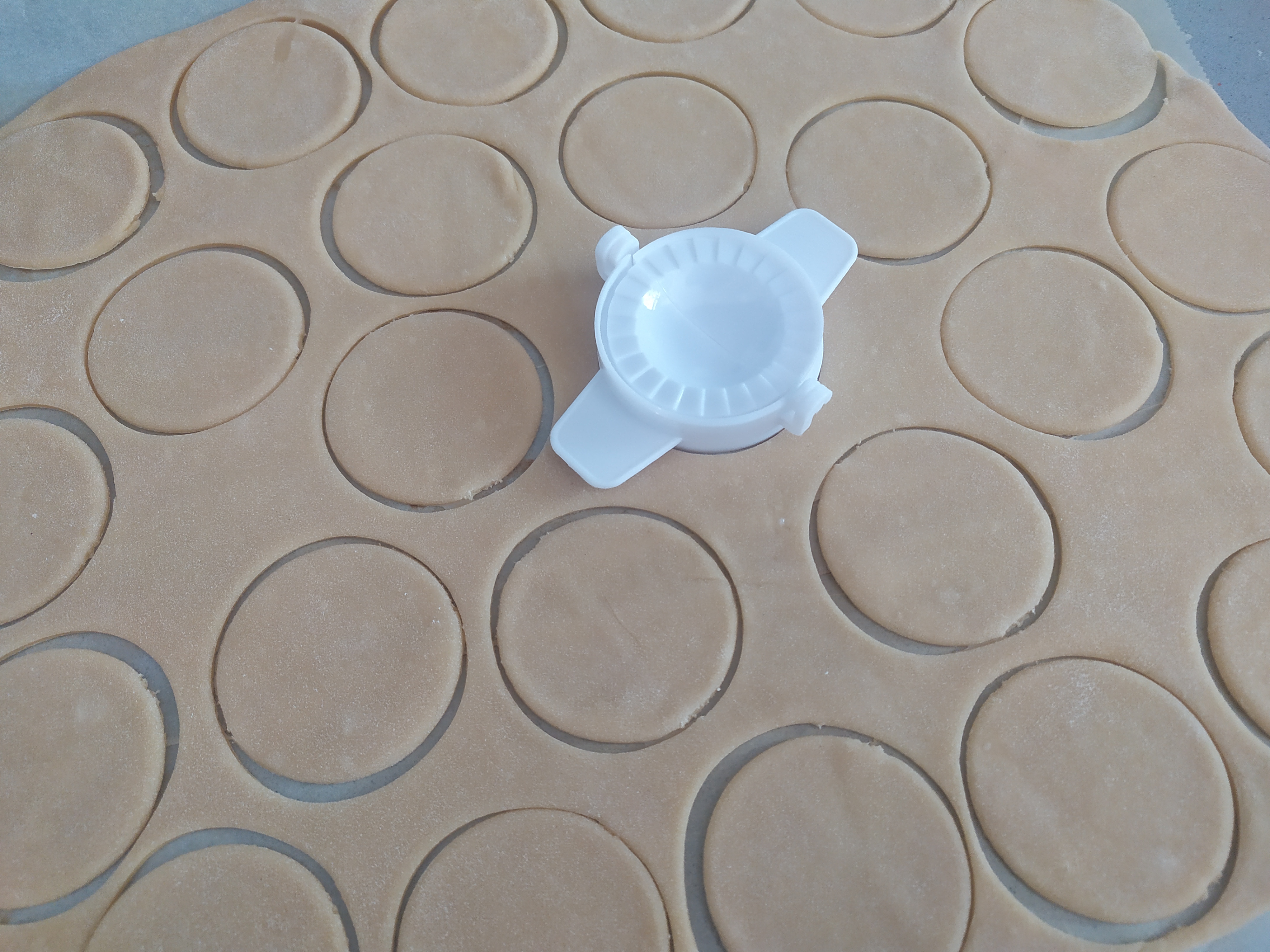 -una vez rellenos, los sellamos bien con la ayuda de un tenedor y los colocamos en una bandeja enharinada