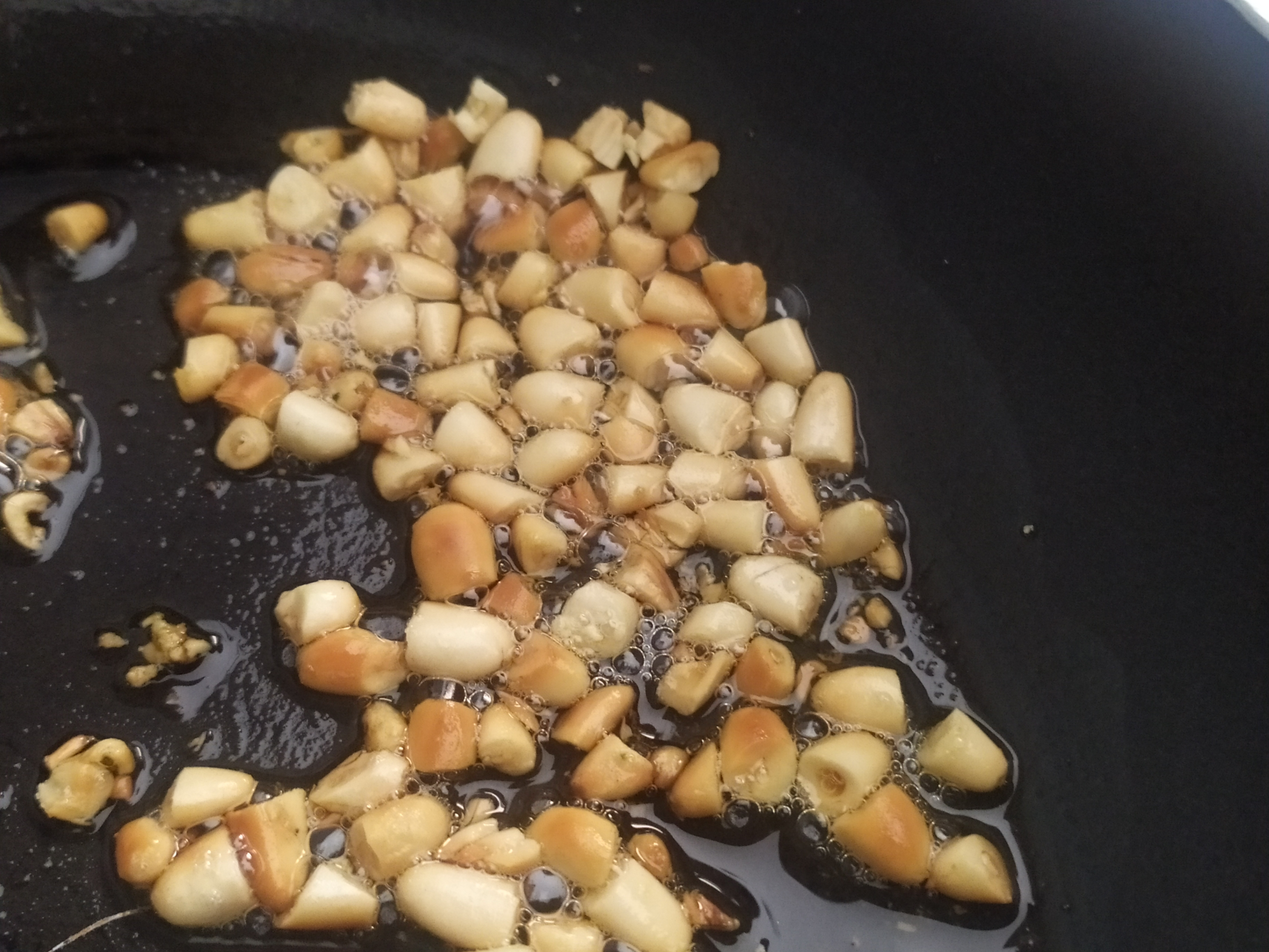 -por otro lado, en una sartén con un poco de aceite, doramos un puñadito de piñones troceados