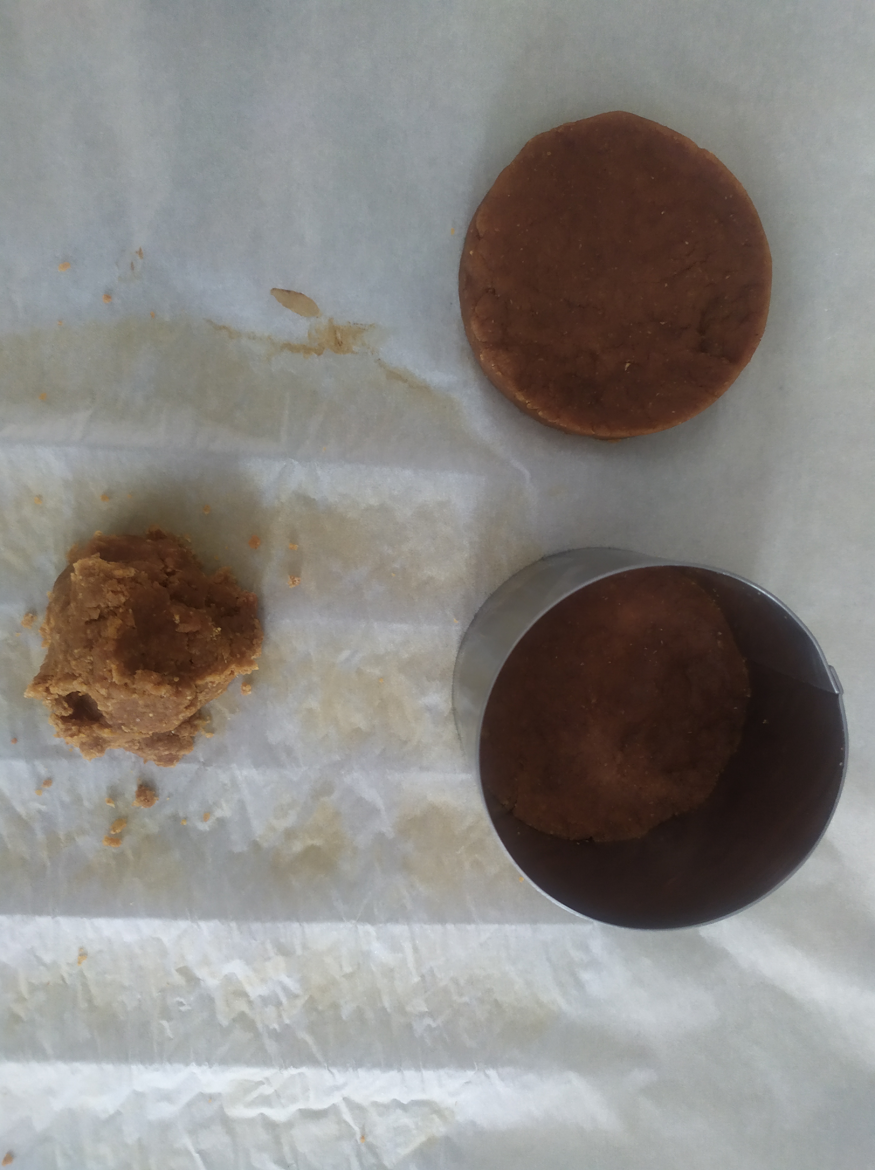 -cuando haya reposado, retiramos de la nevera y le damos forma encima de un papel de horno. Volvemos a dejar reposar en la nevera mientras preparamos el resto de elaboraciones