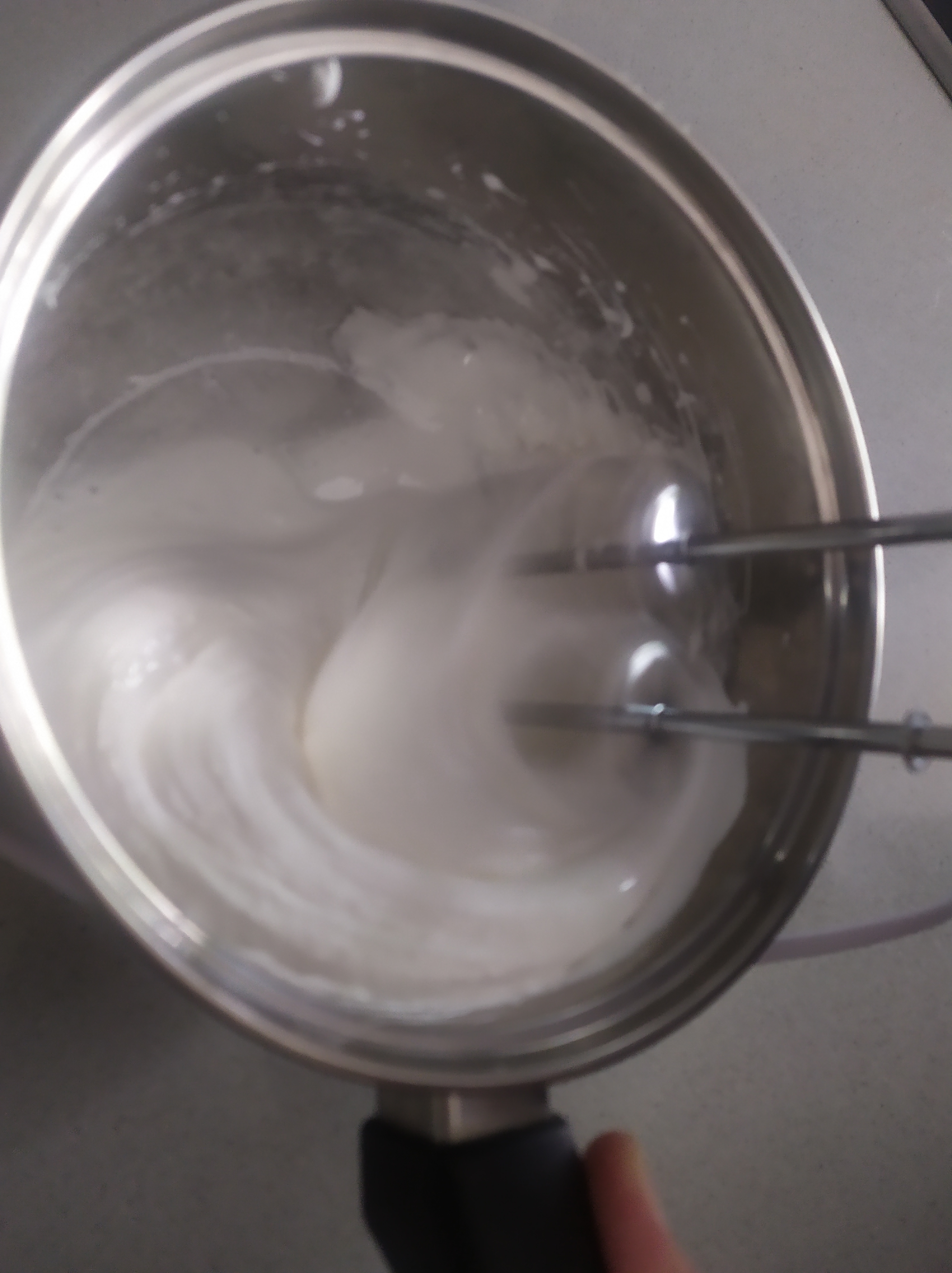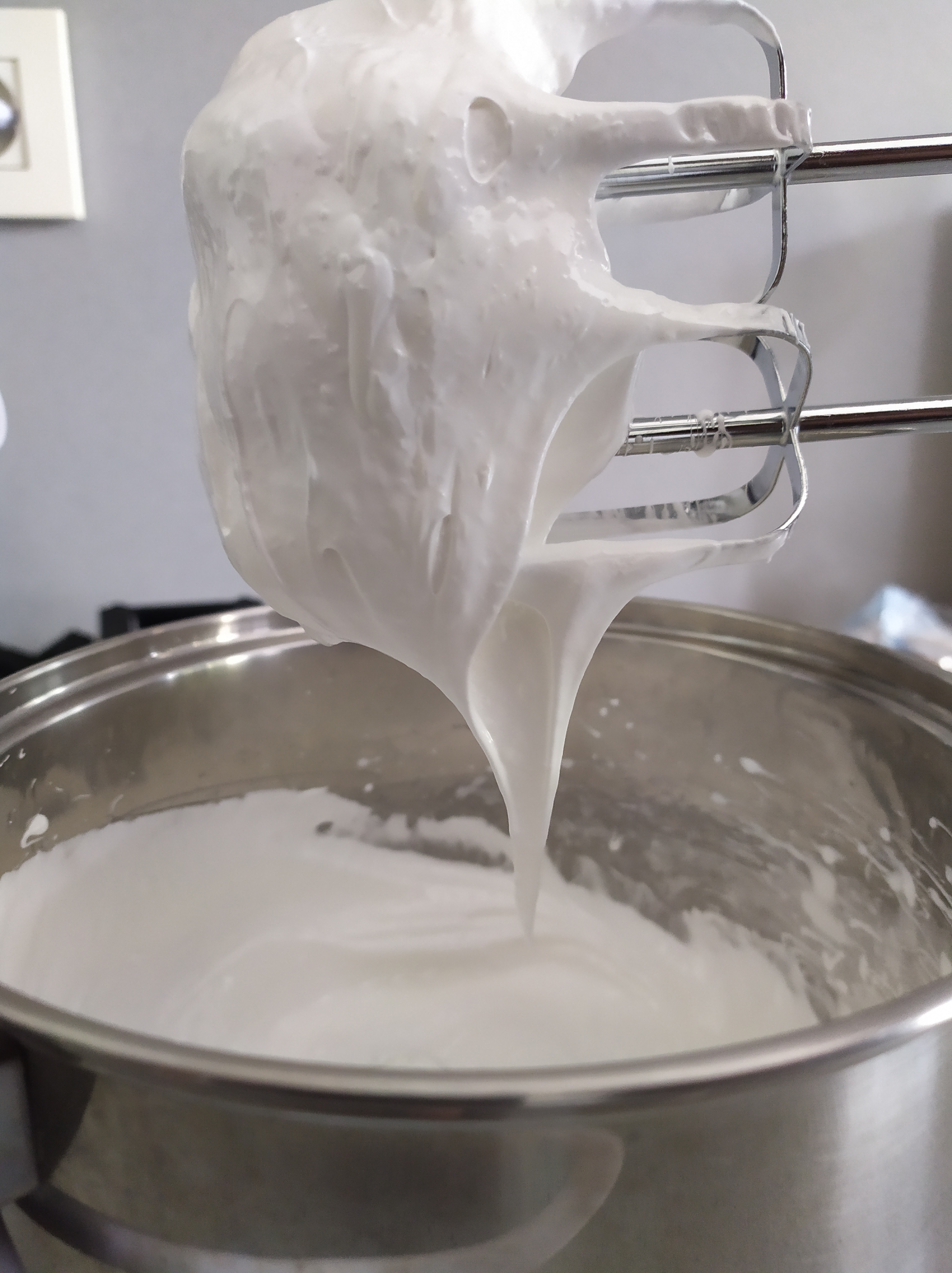 -a continuación, las montamos con unas varillas a punto de nieve, hasta que veamos que queda una textura consistente