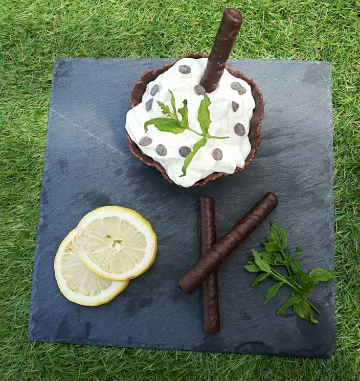 -vertemos la espuma en una copa, un vaso o una tulipa de chocolate. Se puede acompañar con pepitas de chocolate, unas hojitas de menta y cava