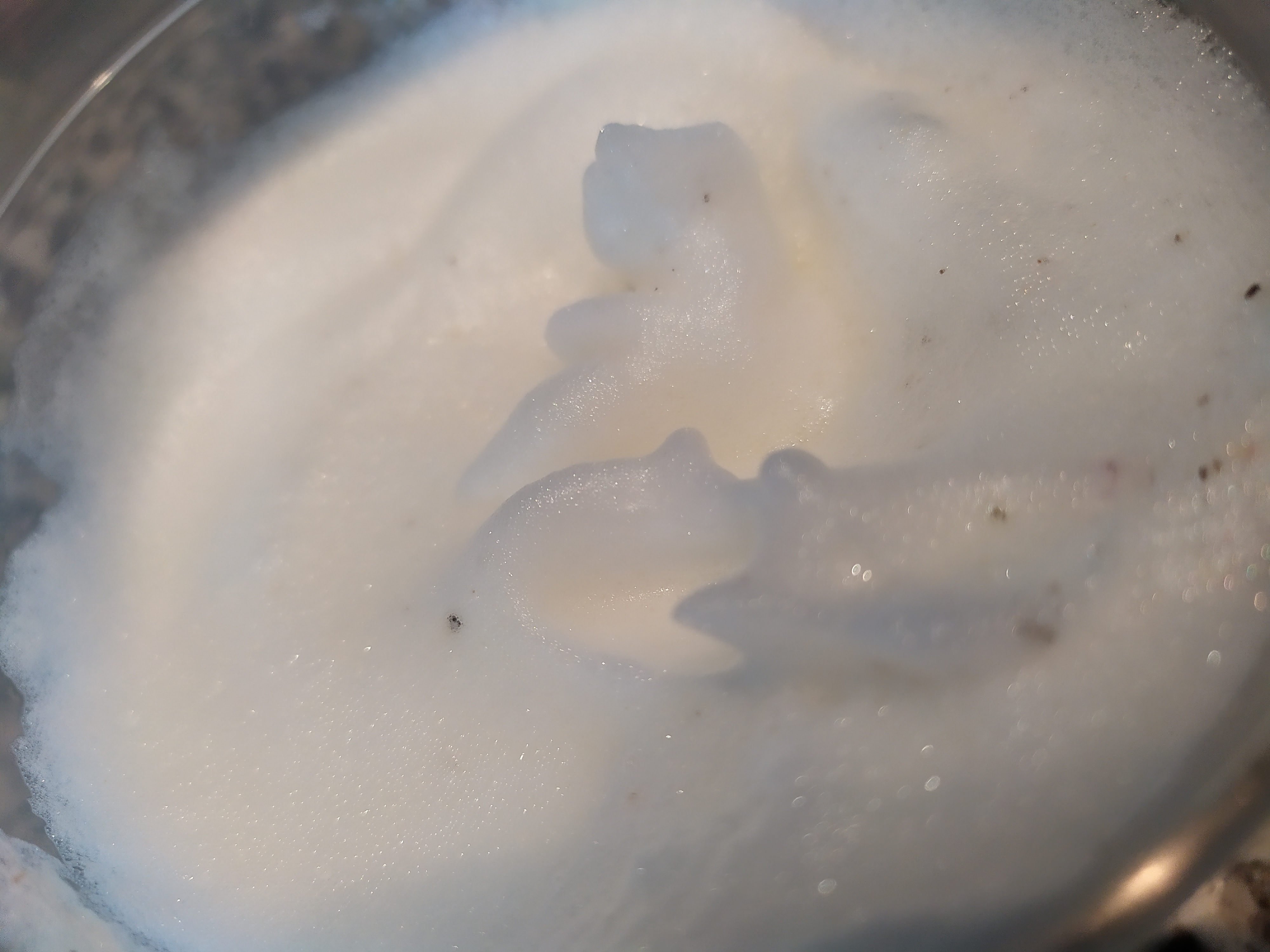 -por otro lado, separamos las claras y las yemas. Las claras las montamos a punto de nieve con un poquito de sal y reservamos las yemas. Le podemos añadir un poquito de pimienta a las claras