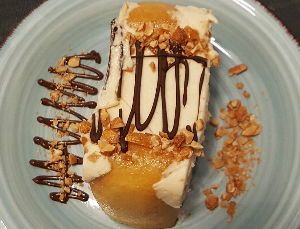 Este año mi madre quería hacer una tarta de turrón que había visto en un programa de cocina. Le sugerí prepararla juntas y aprovechamos el fin de semana que nos pudimos ver para comer. No tenía muchas esperanzas, ya que los ingredientes principales son turrón blando (que nunca como, no me gusta mucho) y nata (que intento no abusar de ella). Además, me sugurió el emplatado que había visto en la tele, que era hecho en un molde rectangular y la mousse de turrón servida entre bizcochos bañados en un sirope de naranja. Ya os digo que no estaba muy convencida, pero me insistió que ella tenía ganas de hacerla y que seguro que estaba buenísima. Así que le dije que sí, me animé y la hicimos el fin de semana. Ha quedado buenísima y la mezcla de la mousse cremosa de turrón y los bizcochos de naranja es una muy buena combinación. Para redondearla, la hemos decorado con un poco de chocolate fundido y almendras garrapiñadas por encima.