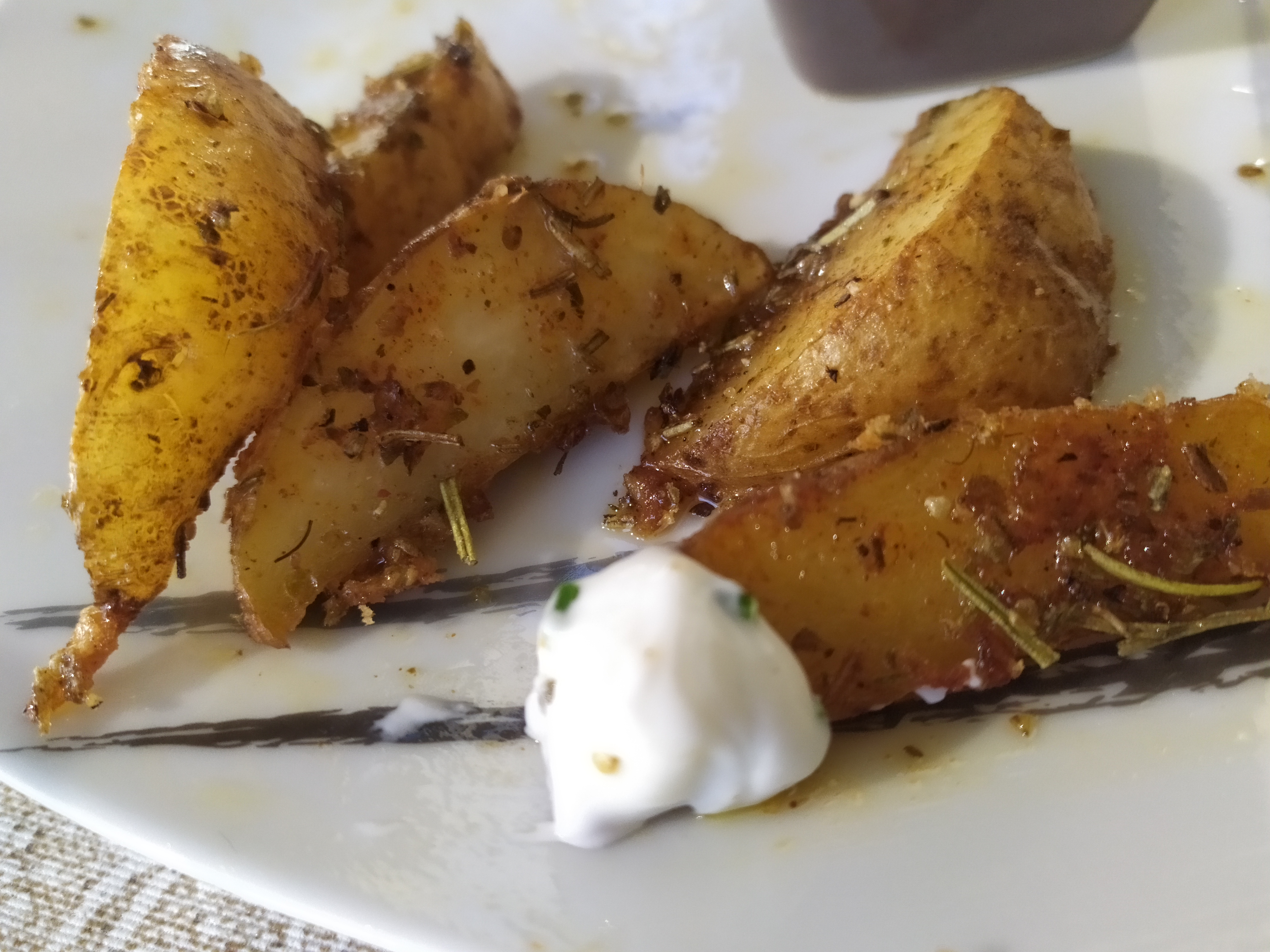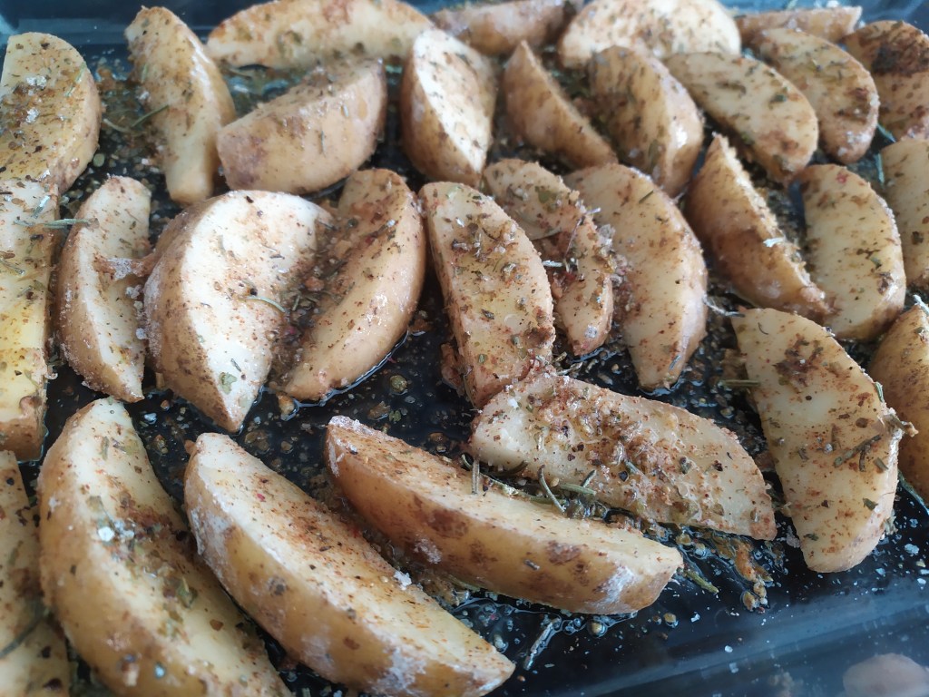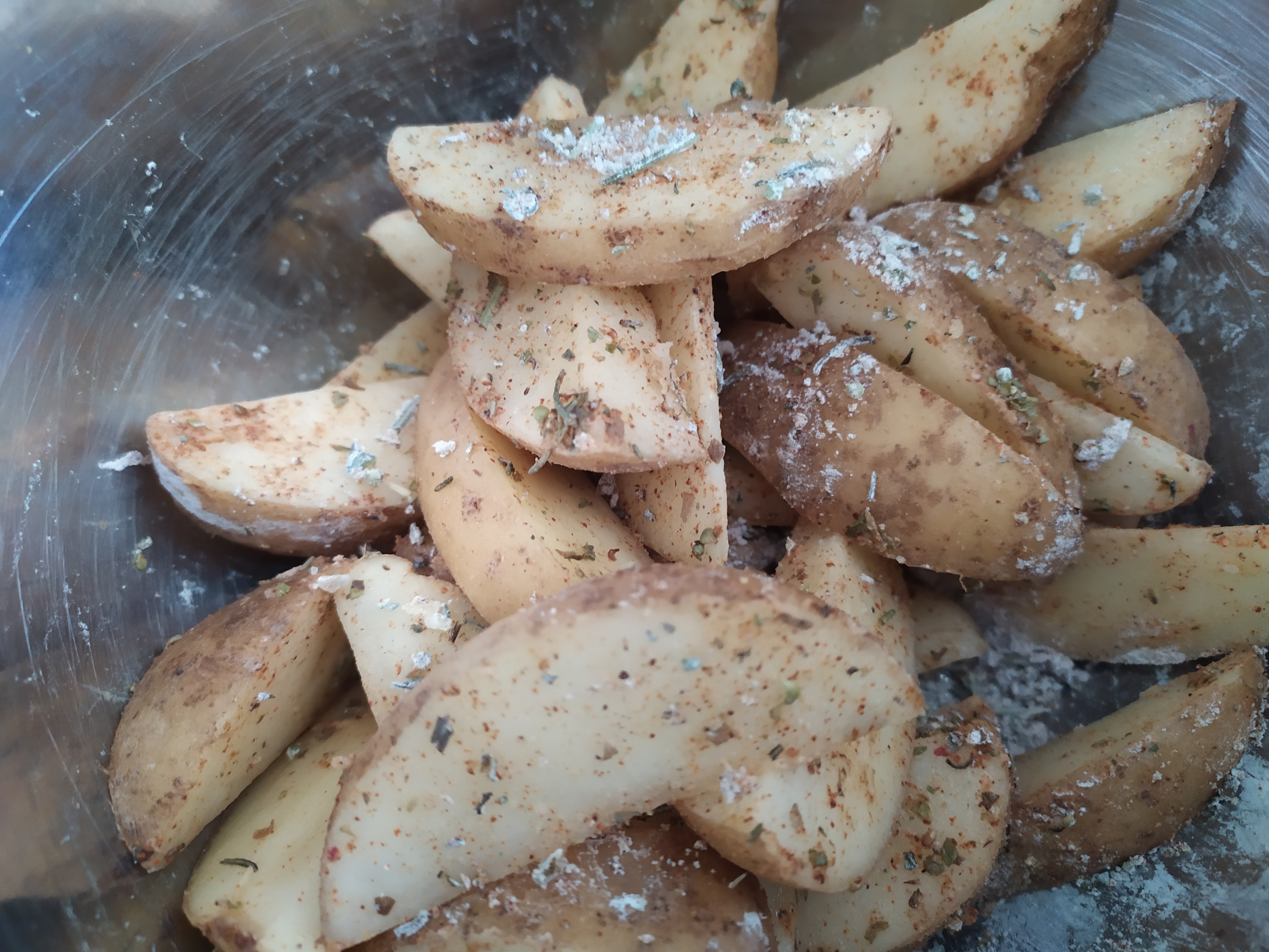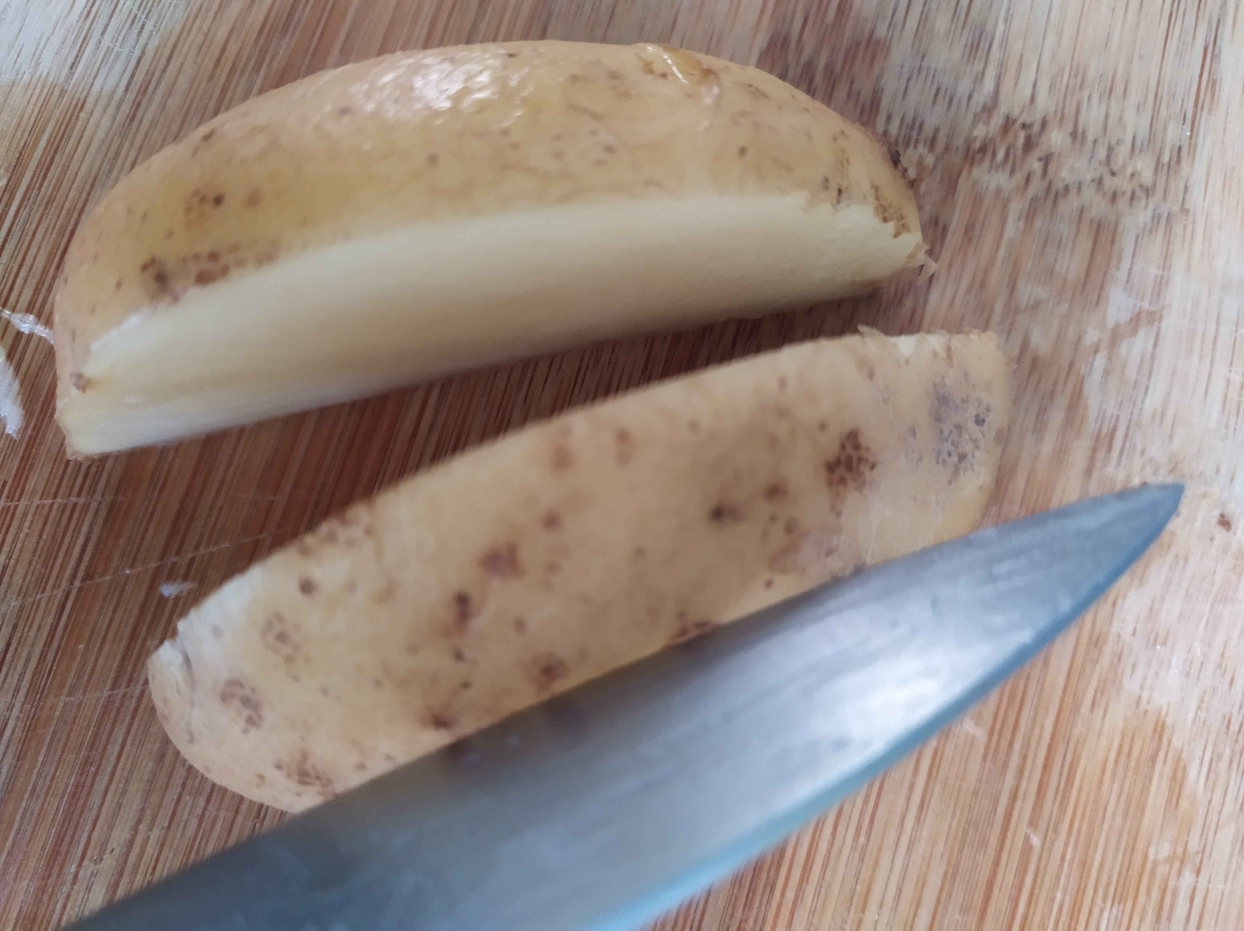 -las cortamos en gajo (primero cortamos la patata a la mitad y esa mitad en otra mitad, así obtenemos la forma de gajo)