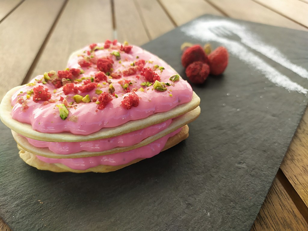 Este año, para San Valentín he preparado un postre muy sencillo y con pocos ingredientes. De base he utilizado masa quebrada, que queda firme y crujiente, y la he cortado en forma de corazón. He hecho varias capas y así las he ido rellenando. Es una receta que podéis adaptar y modificar para hacerla con los ingredientes que más os gusten, yo aquí os doy dos ideas de rellenos. Uno es de tiramisú (requiere dos elaboraciones diferentes) y el otro de fresas y queso crema. Son sabores muy diferentes pero con el mismo resultado: sabroso, fácil y vistoso. A ver si os animáis con alguno de ellos.