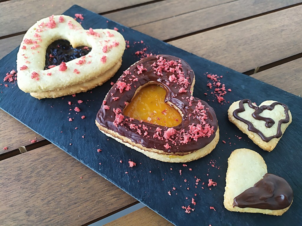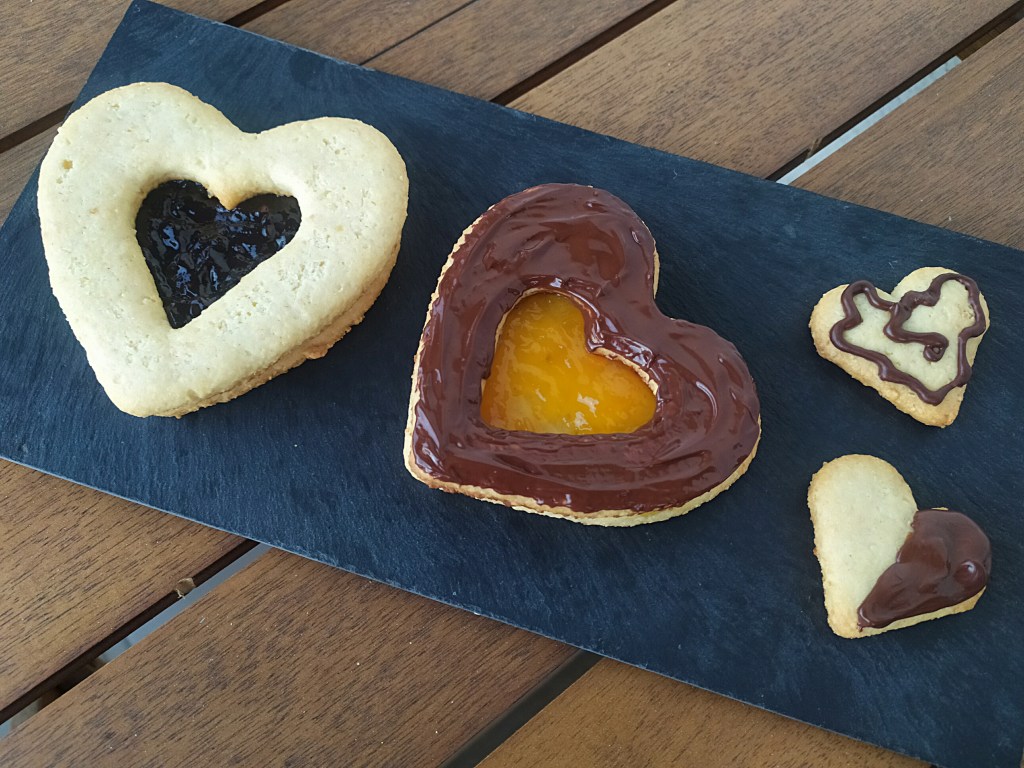 Como ya sabéis, me encantan las galletas, son mi perdición, y siempre que tengo ocasión experimento nuevas recetas. En esta ocasión las he hecho con almendras, que le aporta un sabor y textura especial. Además, he aprovechado que se acerca San Valentín y les he dado forma de corazón, que he rellenado de mermelada. Están buenísimas tanto rellenas como solas sin nada. Algunas también las he decorado con un poco de chocolate fundido, la combinación con la mermelada y la masa de almendra es genial. Las podéis cortar de la forma que queráis, es una masa que se trabaja muy bien. Yo la he dejado reposar en la nevera y así a la hora de estirarla es más fácil, ya que la mantequilla se endurece y la masa es más manejable. Las podéis dejar más finas (si os gustan crujientes) o un poco gorditas (más blanditas), eso va a gustos.