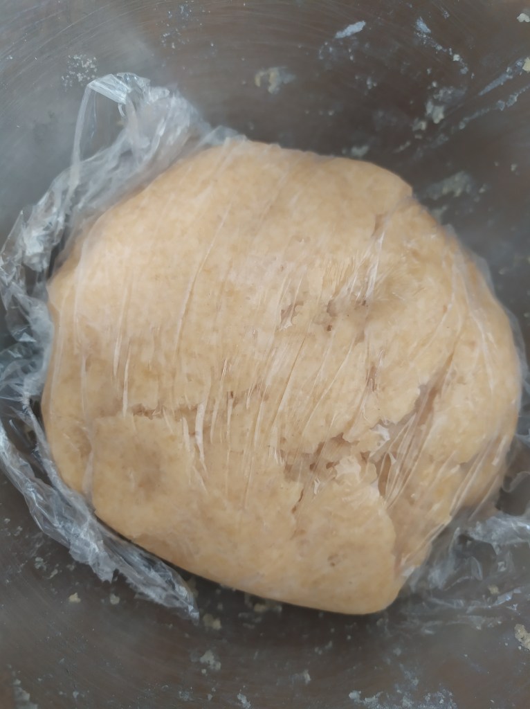 -amasamos bien hasta que se integren todos los ingredientes. Hacemos una bola, que tapamos con film transparente y dejamos enfriar en la nevera (yo la he dejado de un día para otro, así la mantequilla está más consistente)