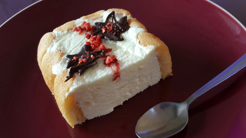 Esta vez he querido preparar un postre refrescante y suave y para hacerlo diferente a la mousse de limón que preparamos normalmente; lo he hecho en un molde alargado, con un poco de nata en el relleno para que tenga más consistencia y en lugar de hacer una base de galletas y mantequilla, he optado por utilizar bizcochos, que he mojado en un sirope de limón y naranja. Para decorar, le he añadido por encima chocolate de cobertura previamente endurecido y fresas liofilizadas. Es un dulce suave que ayuda a rebajar una buena comida. Si preferís que los bizcochos no estén tan blandos, los podéis colocar sin remojar o también dejarlos reposar unos días una vez bañados (lo he comprobado con los trozos que me sobraron, que los dejé en una bandeja unos días y luego están buenísimos, no tan blandos y con un sabor cítrico muy rico).