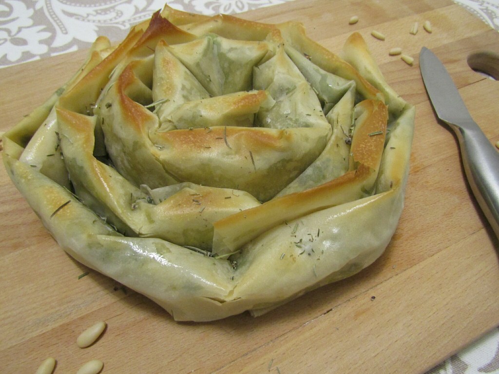 Hace tiempo que vi este pastel griego y me llamó la atención. Era una de esas recetas que tenía guardada y pendiente de hacer, así que el fin de semana me decanté por ella y la preparé para cenar. No he tenido la suerte de visitar Grecia, pero por lo que he podido leer, la spanakopita es un pastel de espinacas, pasas y queso feta y es una de las recetas más populares de la gastronomía griega. Se trata de una masa filo rellena, que está buenísima. Yo la he rellenado de espinacas, queso feta, ajo y piñones y por encima le he añadido hierbas aromáticas secas. Es muy rápido y fácil de hacer y si os gustan las espinacas es una manera diferente para comerlas.