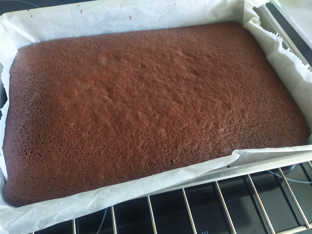 -colocamos papel de horno en el molde, para que luego sea más fácil desmoldar, y vertemos la masa, que horneamos a 180 grados con el horno precalentado durante unos 30 minutos (para confirmar que está hecho, podemos pinchar con un palillo y si sale seco es que ya está listo)