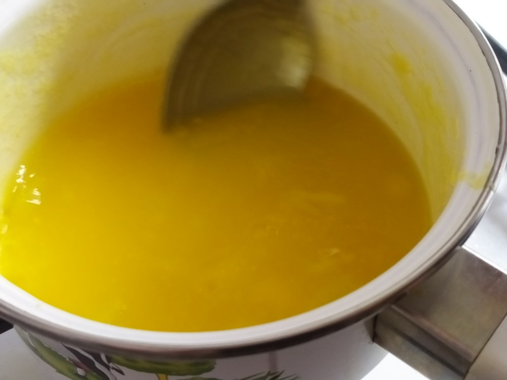 -ponemos los yogures de limón en un recipiente pequeño y calentamos una parte en el microondas