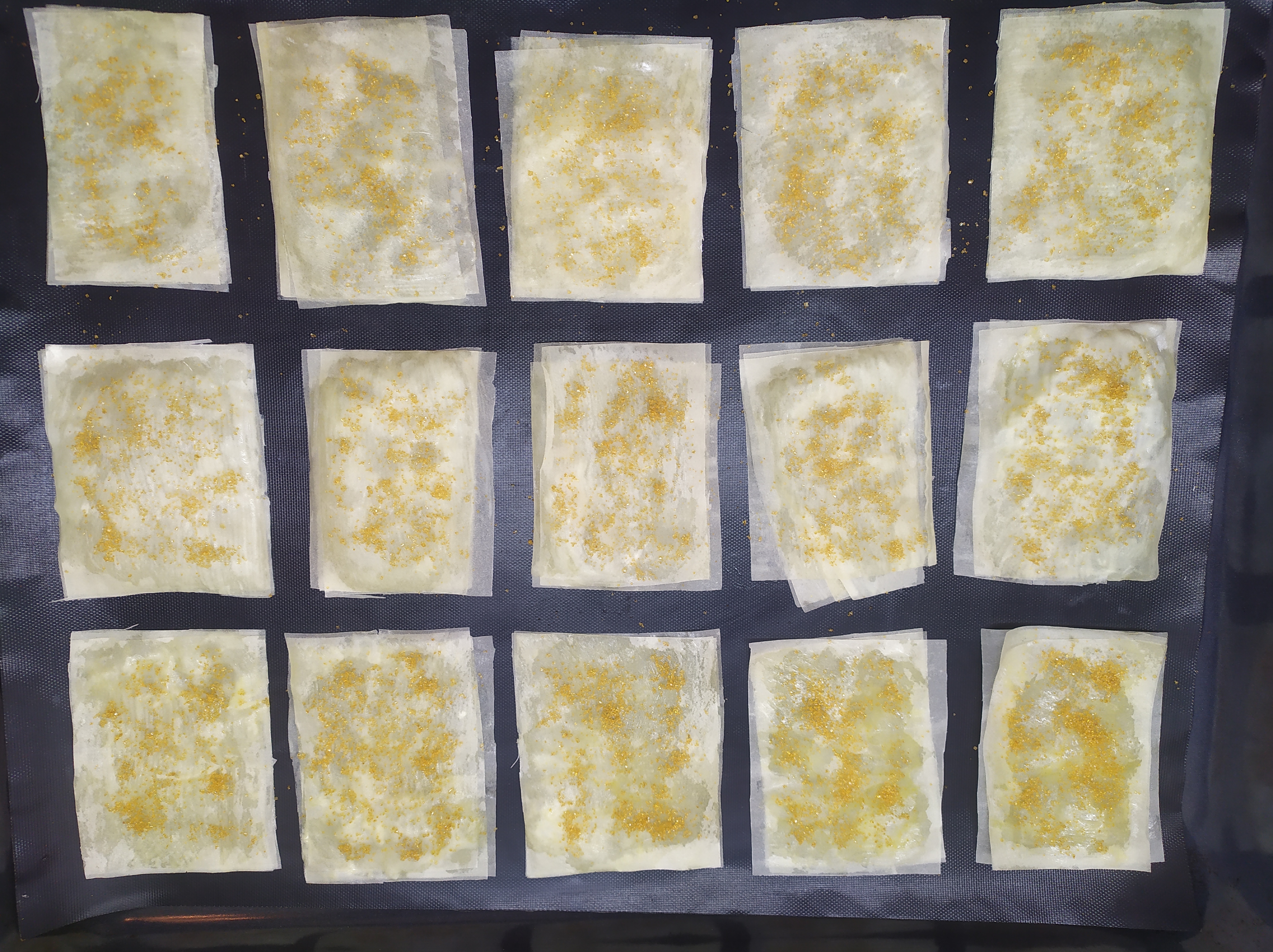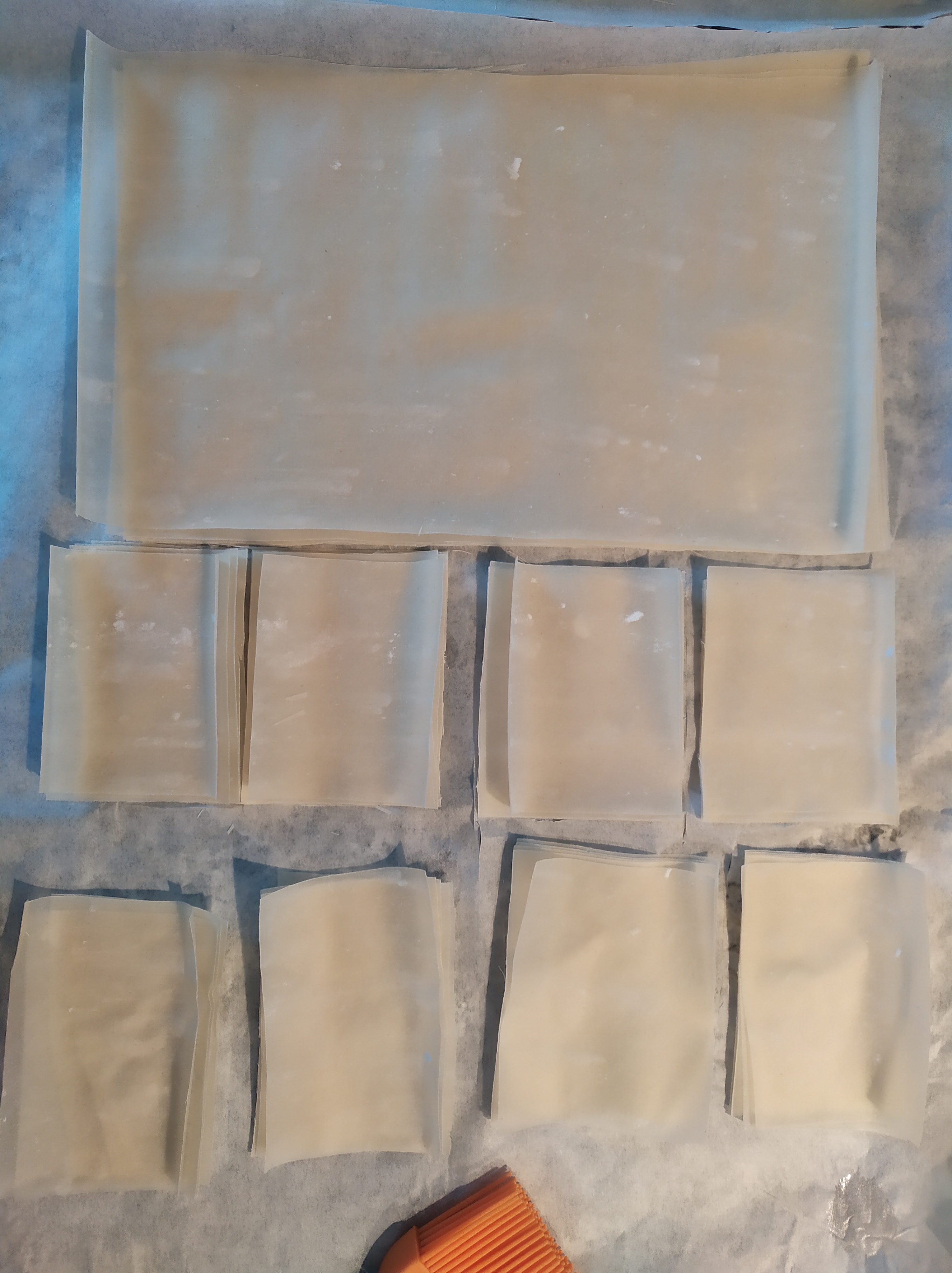 -colocamos las láminas juntas extendidas y cortamos rectángulos pequeños