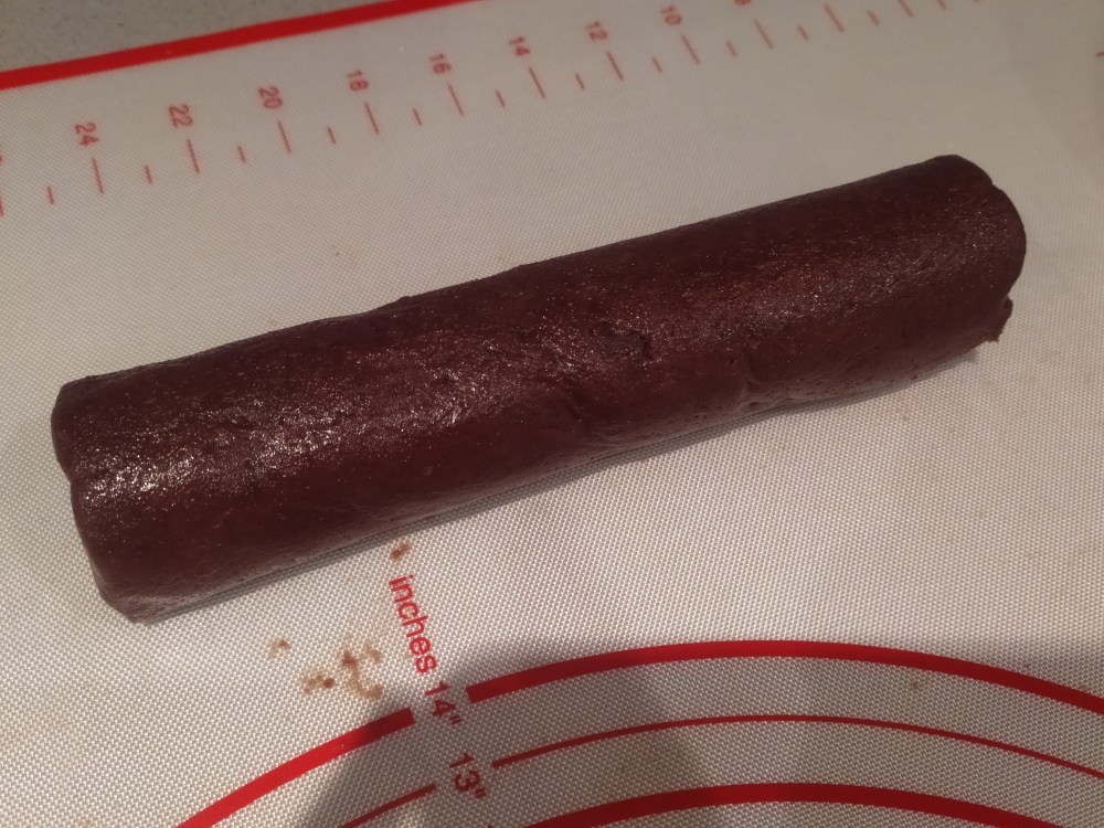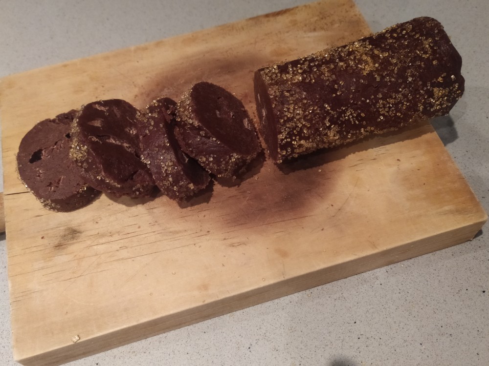 -cortamos rodajas del rulo y colocamos las galletas en un papel de horno