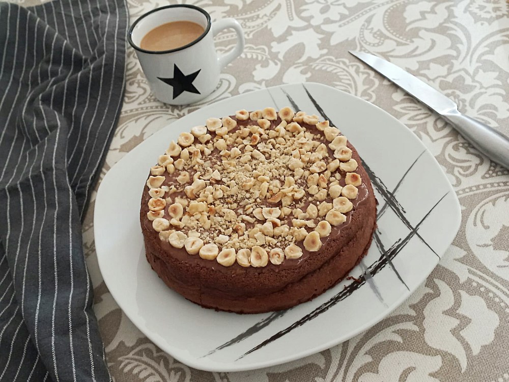 Como buena fan del chocolate y tras el éxito que tiene la crema de avellanas, que ya la he preparado en varias ocasiones y siempre vuela, he querido preparar una tarta diferente, sin harina. Las avellanas bien picadas sustituyen la harina de trigo o de fuerza que se suele utilizar para los bizcochos. Además, también lleva chocolate, lo que le aporta un gusto exquisito, mezclado con las avellanas. Si lo hacéis, veréis que tiene una textura peculiar, queda muy esponjoso. Además, por si no está ya suficientemente bueno así, por encima está cubierto con una capa de crema de avellanas a la que le he añadido chocolate, lo que redondea este bizcocho. Además, lo he decorado con avellanas troceadas, lo que redondea este postre.