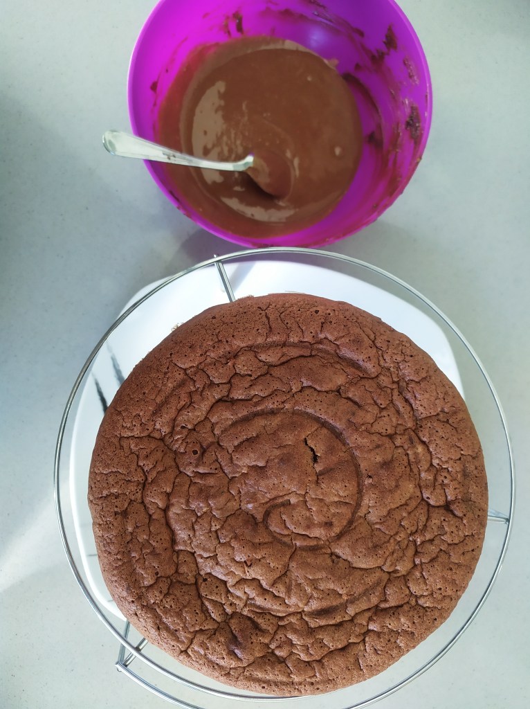 -por otro lado, fundimos en el microondas o al baño María el chocolate negro y luego le añadimos la mantequilla (textura pomada) y mezclamos