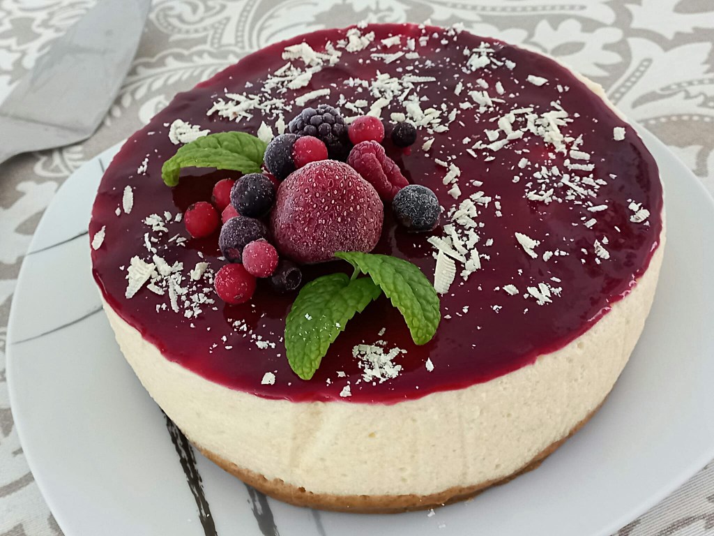 Para celebrar el cumpleaños de mi mejor amiga, le quise hacer una tarta para que soplara las velas. Tenía dudas de qué postre preparar, ya que ella, al igual que yo, es muy golosa, y tenía varias opciones. Justo unos días antes me envió para que viera una receta de cheesecake de mango, que me pareció muy original. Así que me decanté por este postre. Quedo buenísimo, muy esponjoso, refrescante, suave y perfecto para redondear una buena comida. Si os gustan las tartas de queso, os animo a preparar esta versión afrutada. Para acompañar el sabor del mango, la cubrí con un coulis de frutos rojos, que le aporta un toque ácido que combina mucho.