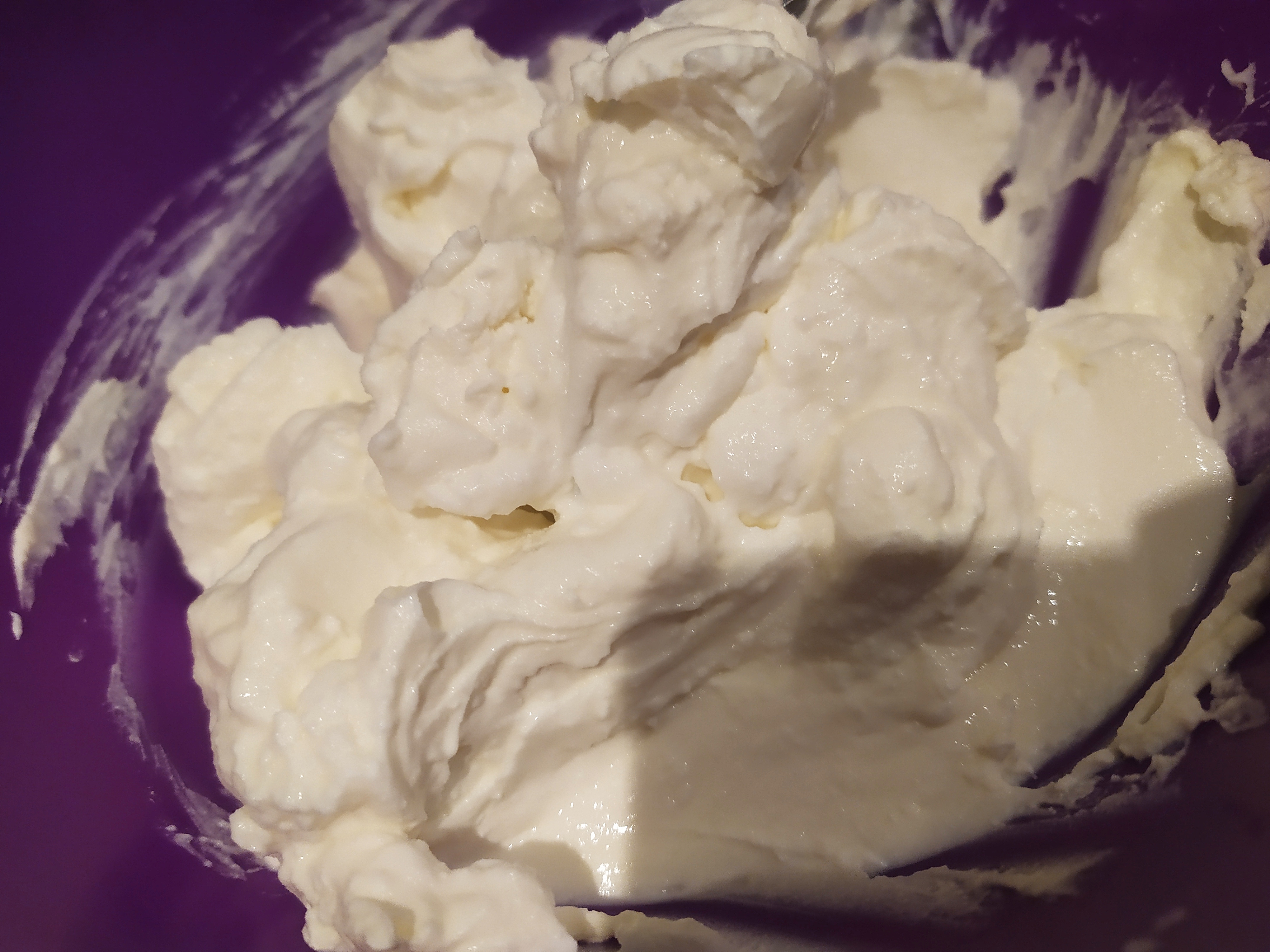 -por otro lado, troceamos el mango y lo trituramos bien y mezclamos con el azúcar y el queso crema