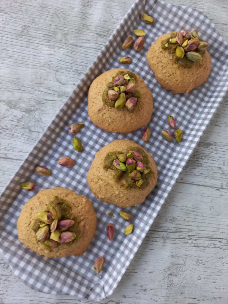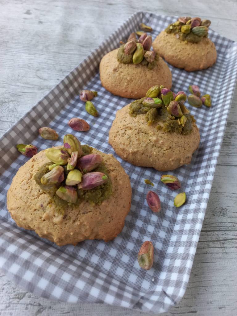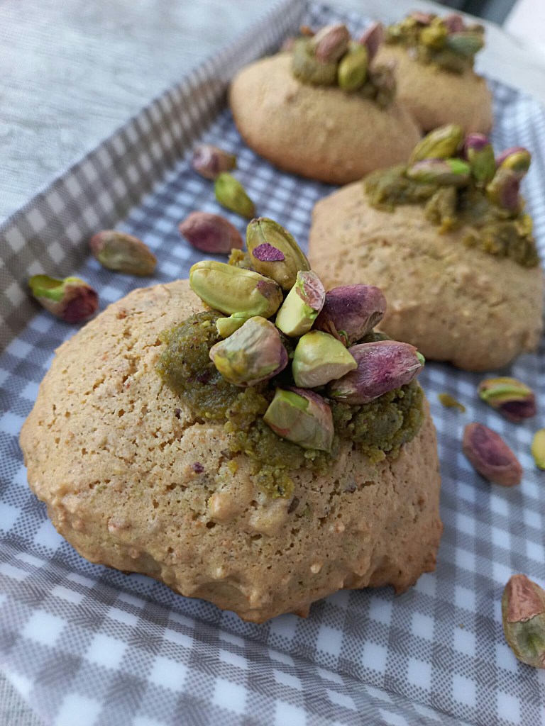 -cuando las galletas estén frías, colocamos encima praliné de pistacho y pistachos troceados. Además de buenas, quedan muy bonitas