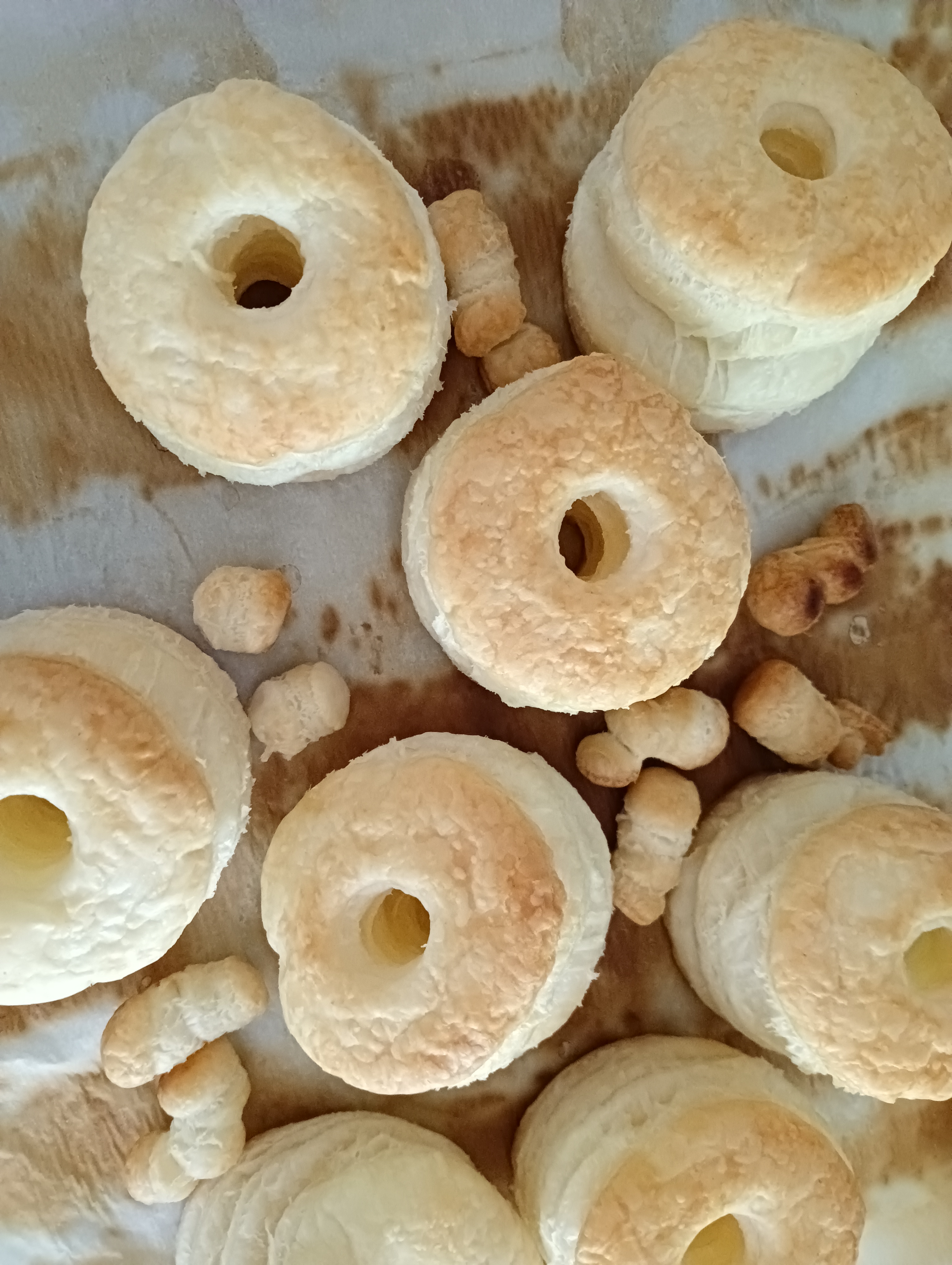 -la masa sobrante, la podéis estirar con el rodillo hasta que quede fina y repetís el proceso anterior para hacer más rosquillas