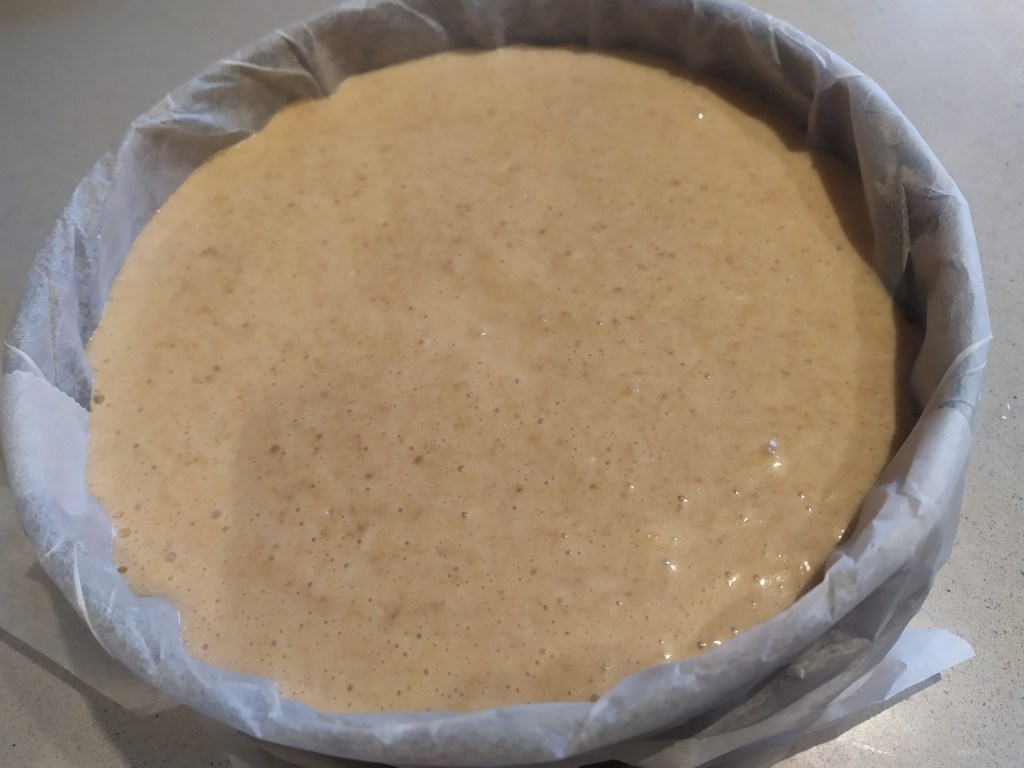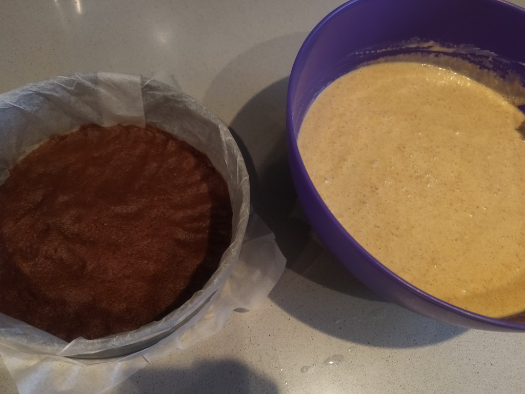 -vertemos el relleno encima de la base que habíamos preparado y volvemos a dejar enfriar en la nevera