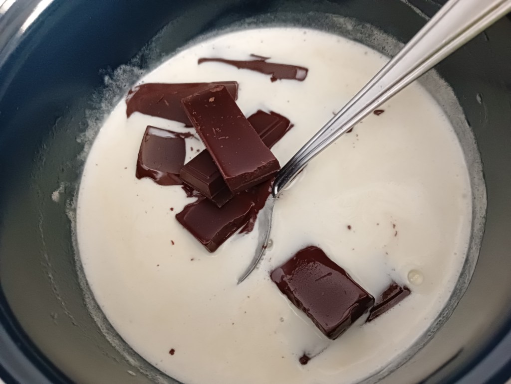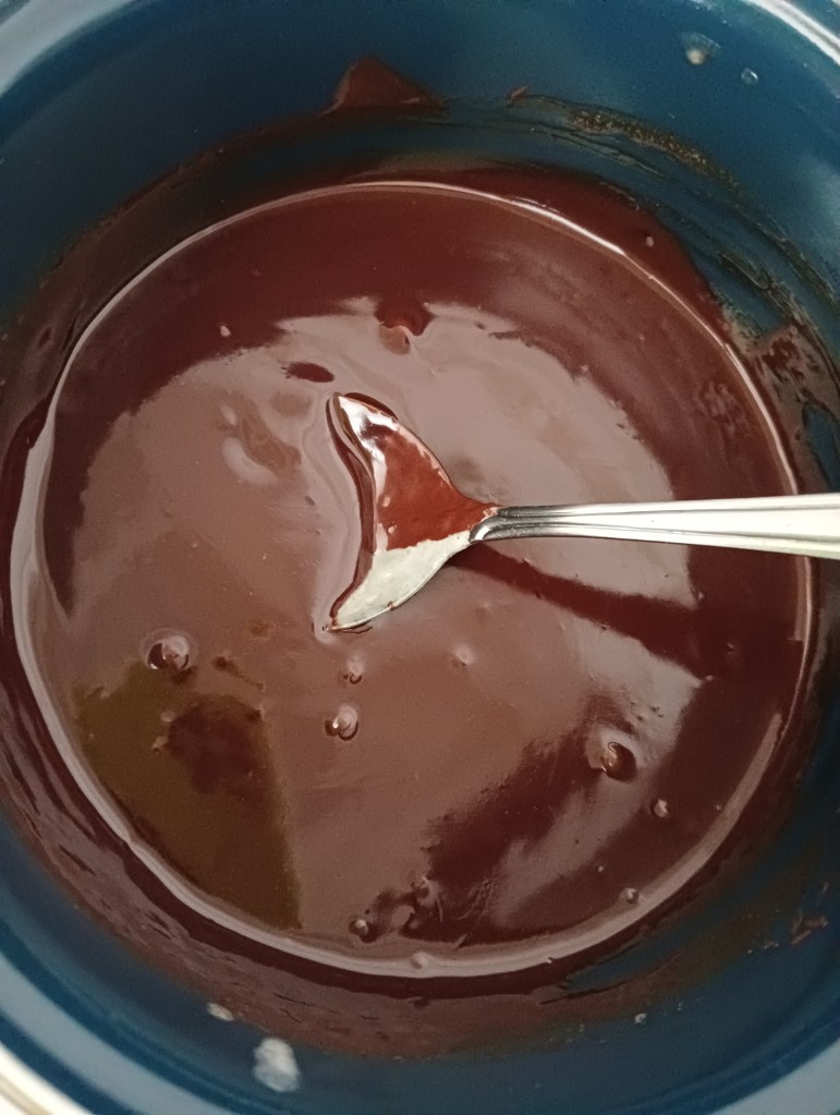 -preparamos la ganache: calentamos en un cazo al fuego la nata hasta que hierva. Con el fuego apagado, añadimos el chocolate y mezclamos hasta que se funda. Reservamos y dejamos enfriar