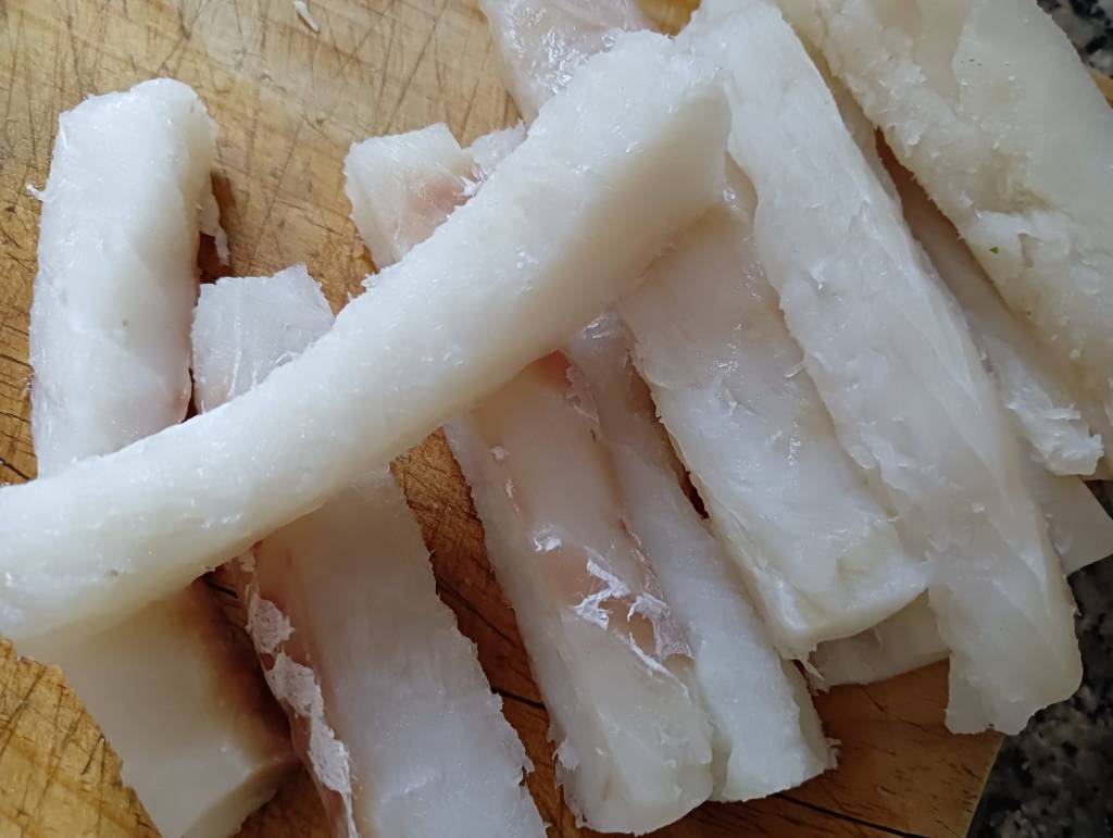 -empezamos quitándole la piel al bacalao y cortándolo en tiras