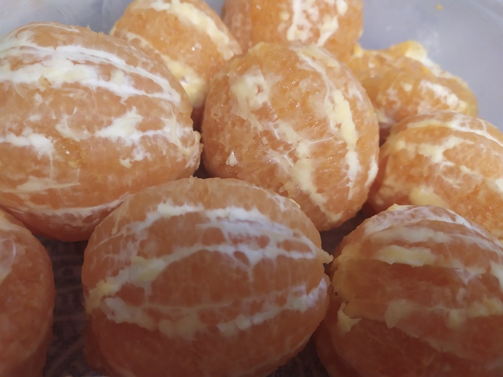 -empezamos pelando las naranjas con un pelador para que no tengan la parte blanca, que amarga
