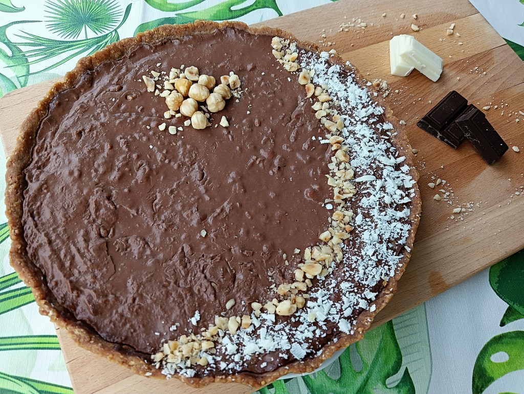 Después de un verano con poca actividad en la cocina, ya era hora de actualizar el blog con nuevas recetas. He querido hacer una tarta de chocolate, que ha quedado riquísima. Nunca había utilizado la cuajada en sobres para espesar un postre y la verdad es que tenía mis dudas mientras la preparaba, ya que ha tardado bastante en espesar al fuego. Es un postre que requiere de pocos ingredientes y si os gusta el chocolate, os la recomiendo. Tiene una base de galletas y mantequilla, rellena de chocolate, leche, cuajada y avellanas. Le he añadido crema de avellanas y avellanas un poco trituradas, para que además del sabor y textura de la crema, le aporte un toque crujiente. La combinación de todos estos ingredientes es perfecta. Yo he utilizado un molde de quiche y he levantado las paredes; como no era desmoldable, lo he forrado con film transparente. Si tenéis un molde desmoldable es mejor.