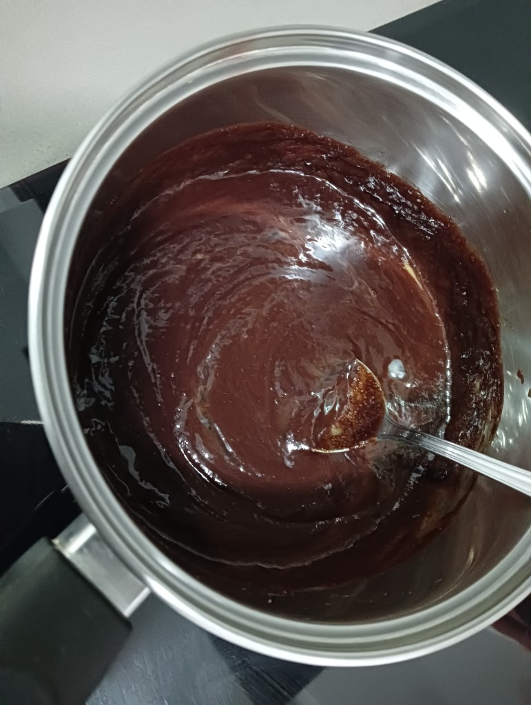 -cuando esté fundido, retiramos del fuego y añadimos el azúcar. Removemos bien para que se integren todos los ingredientes