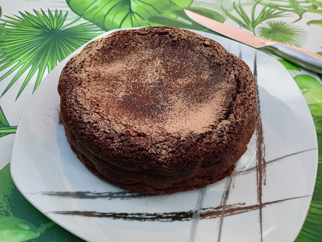 Vi por Instagram una foto de un pastel de chocolate que guardé para hacer algún día. Es una receta de la profesora de cocina Mireia Carbó y solo con ver la foto de su postre se me hizo la boca agua. Lo preparé un fin de semana, pero me pasé con el tiempo de horneado y se hizo demasiado, la gracia está en que el centro quede blando, de textura similar a un coulant, y a mí me quedó más cuajado. Aunque la textura no fue la deseada, de sabor estaba espectacular. Me animé a repetirlo, pero con menos tiempo de horno, y entonces sí, ha quedado como si fuera una tarta de coulant, con un sabor intenso a chocolate, con costra en los bordes y casi fundido del centro, una bomba. Os comparto la receta y el tiempo de horneado que he dejado yo, pero cada horno es diferente y el tiempo puede variar. Os aconsejo que cuando la saquéis del horno, miréis que el centro se mueva y la tarta esté blandita.