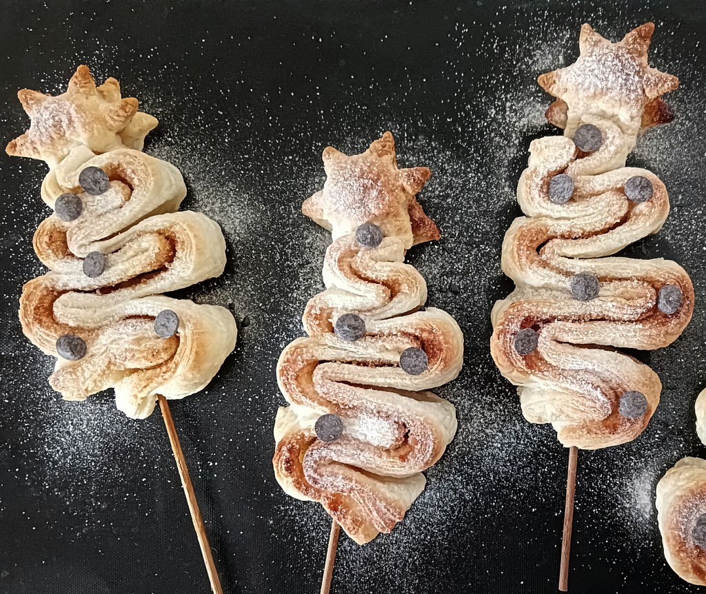 Para estas fiestas navideñas os propongo una receta muy fácil que podéis preparar tanto como entrante salado como de postre dulce. Da mucho juego, es rápida de hacer y requiere de pocos ingredientes. Solo necesitáis láminas de hojaldre, vuestros ingredientes preferidos para el relleno (por ejemplo jamón dulce, Nutella, crema de avellanas, o azúcar moreno y canela). Es una receta muy vistosa para estas fiestas.